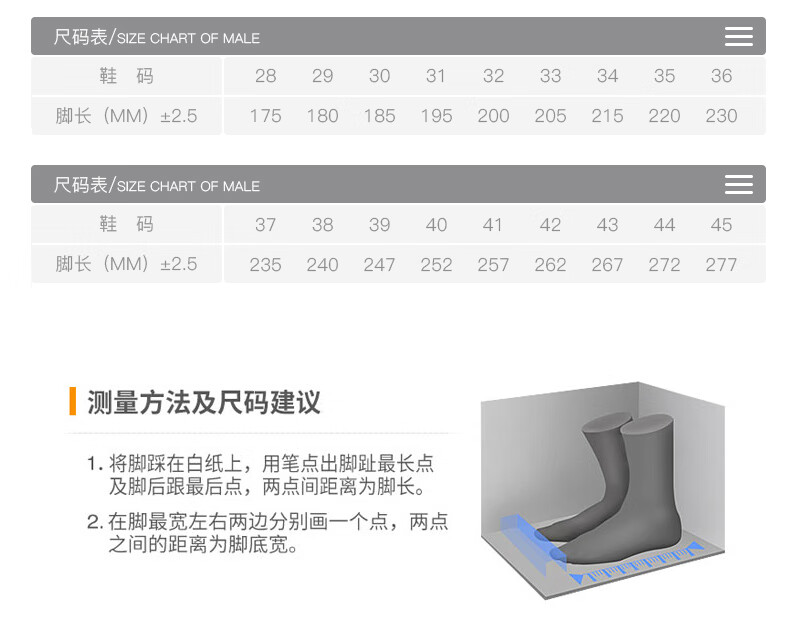 Length (cm) 22.8 23.1 23.5 24.1 24.5 25.1 25.7 26 26.7 27.3 27.9 28.6 29.2