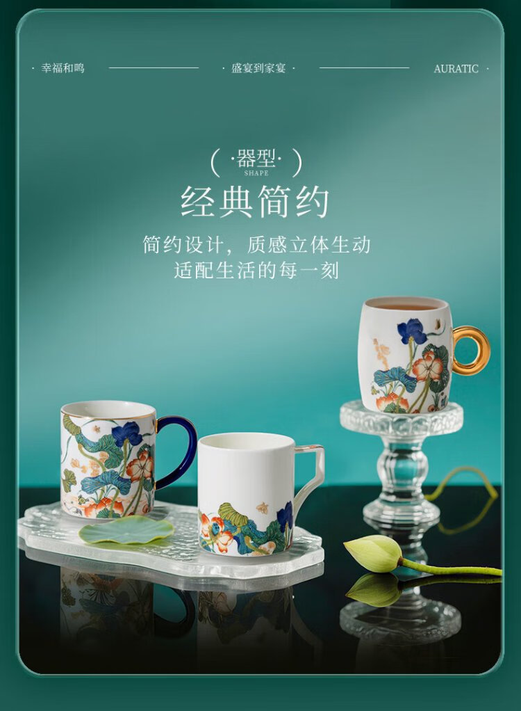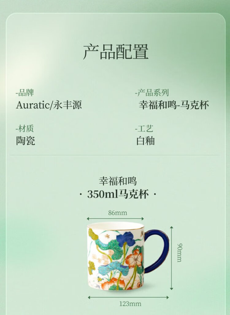 Yongfengyuan (auratic) Happiness and Ming 350ml Water Cup Chinese Ceramic Mug Tea Cup Gift Box Packaging 350ml