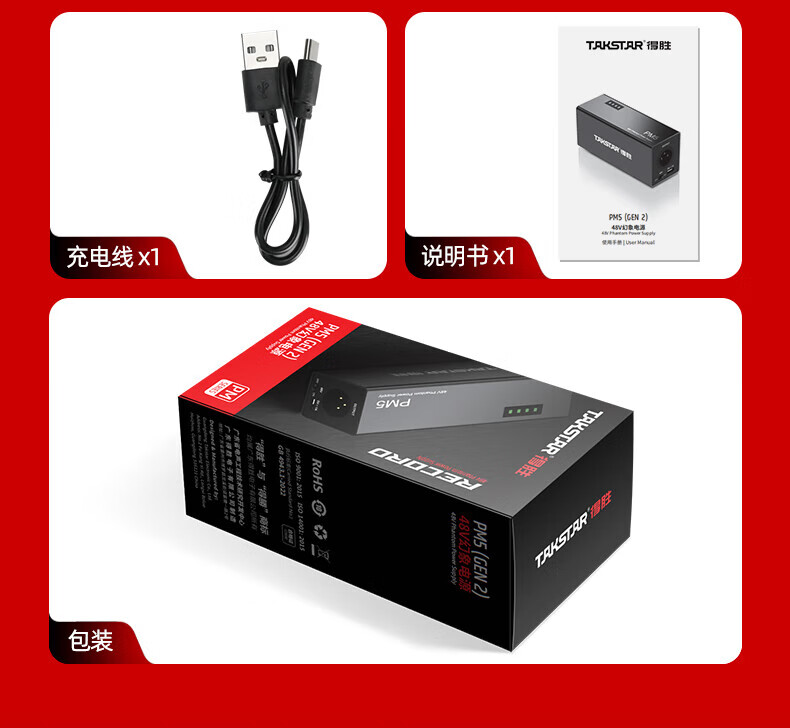 TAKSTAR PM-5 phantom power supply Professional condenser microphone universal power supply Professional live recording karaoke microphone power supply adapter standard