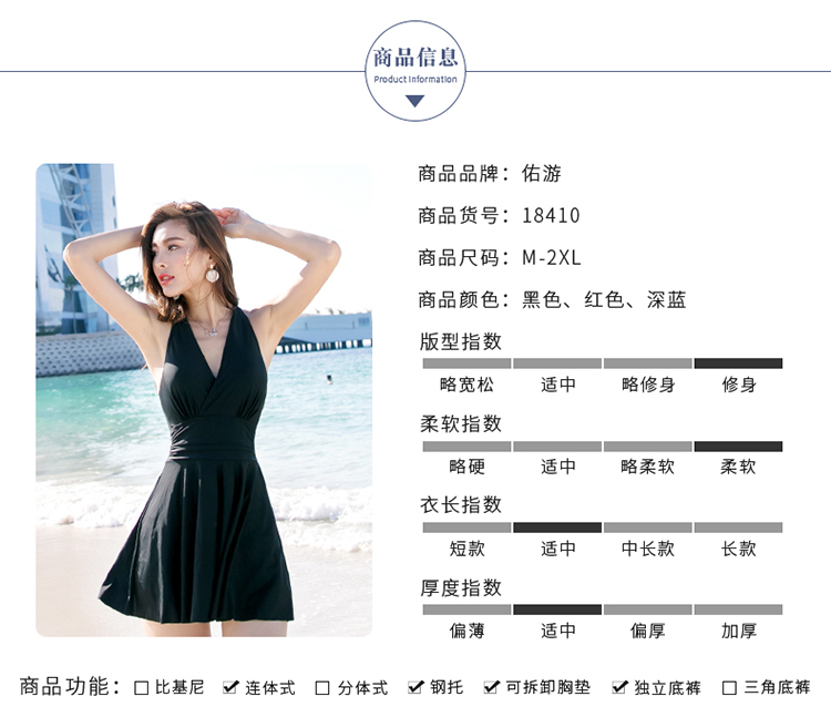 You swimsuit women's dress for hot spring conservative small breasts gathered sexy slim swimsuit four-piece set 19414 black 2XL
