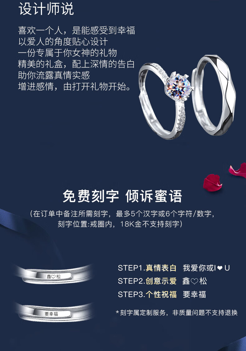 Vangia Moissanite diamond ring couple ring for men and women for marriage, wedding, engagement, silver jewelry, birthday gift for girlfriend, 1 carat couple pair - adjustable - same day/next day delivery