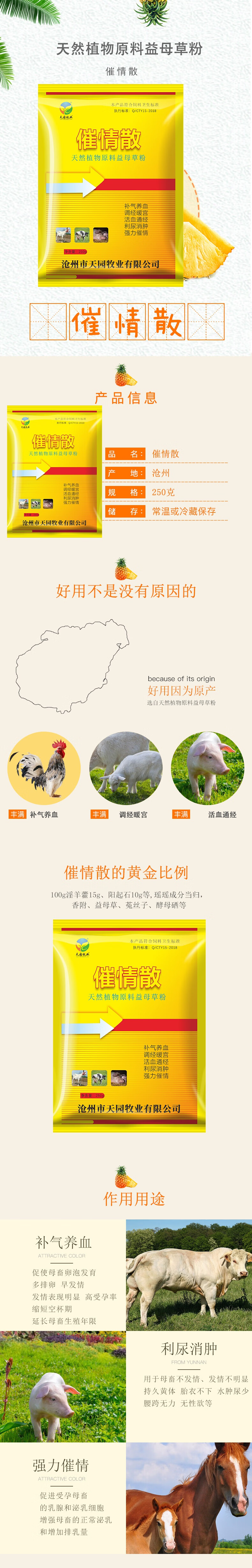 Tianyuan Animal Husbandry uses powerful estrus-dispersing feed additives for chickens, ducks, geese, pigs, cattle, sheep, horses, donkeys, quails and pigeons to stimulate hormones 250g*1 bag