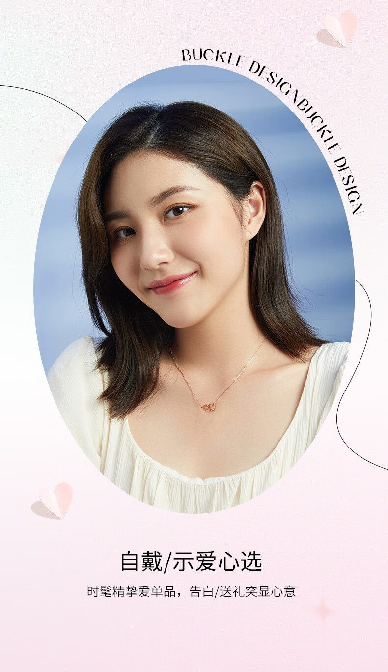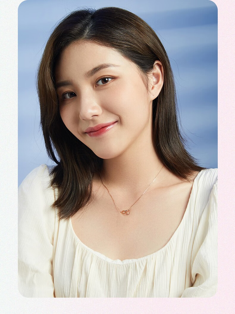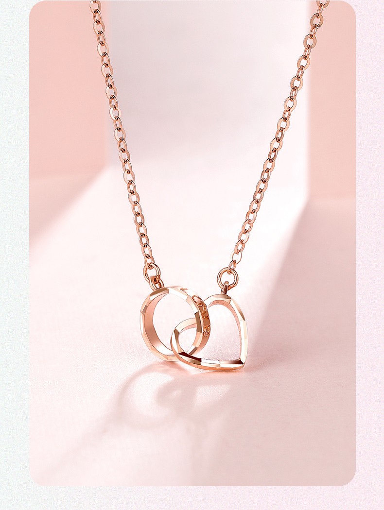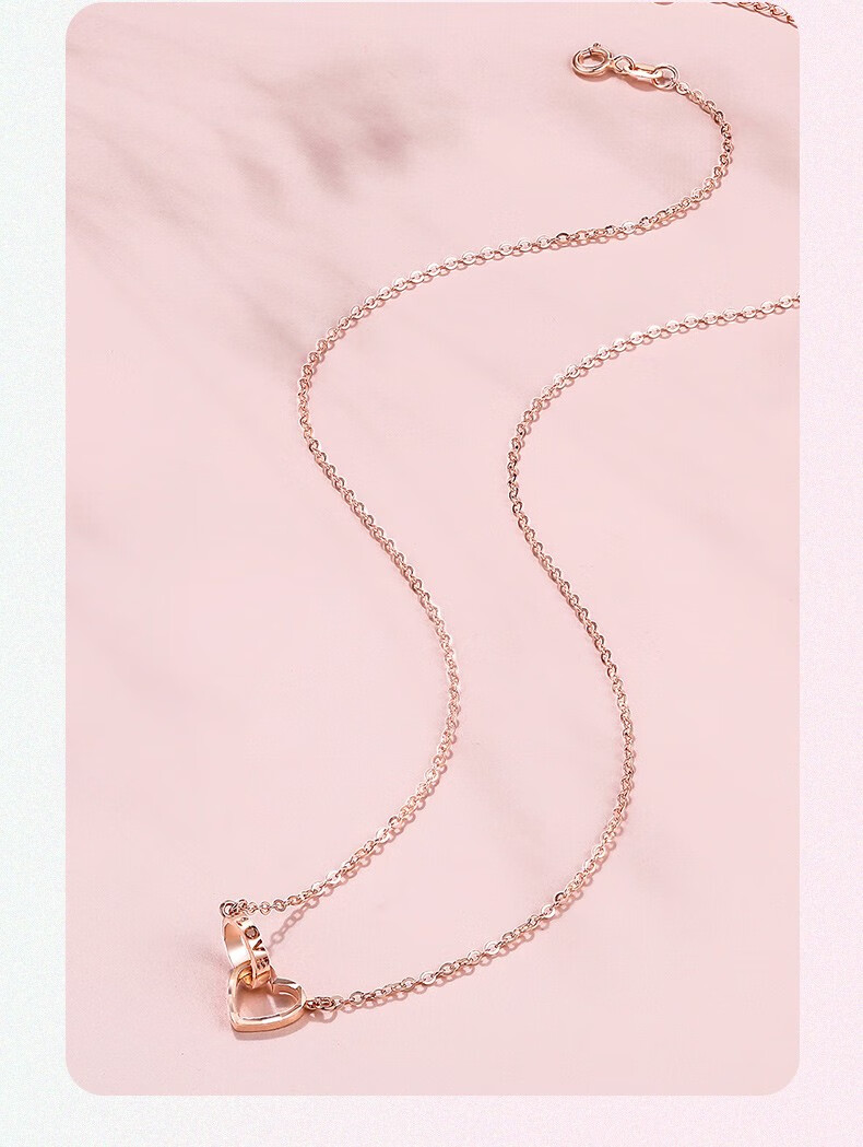 Saturday Fortune (ZLF) 18K gold necklace for women rose gold love-shaped color gold set chain double ring clavicle chain girlfriend birthday 42cm 3cm