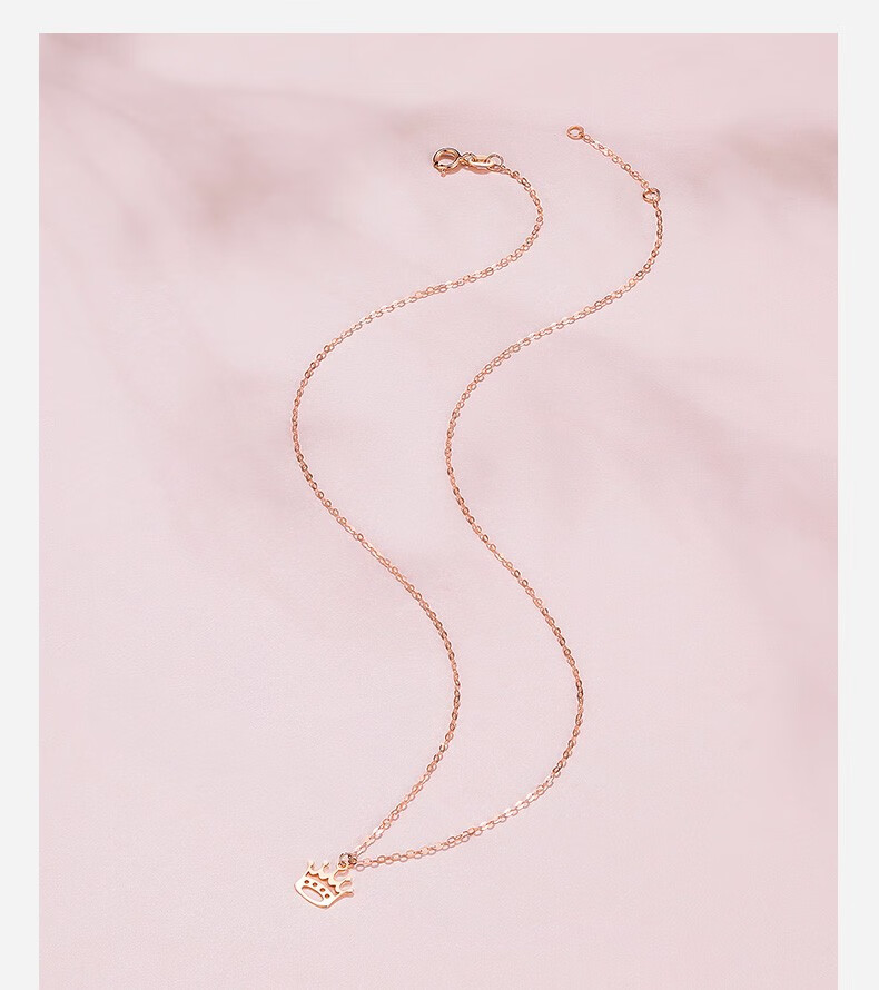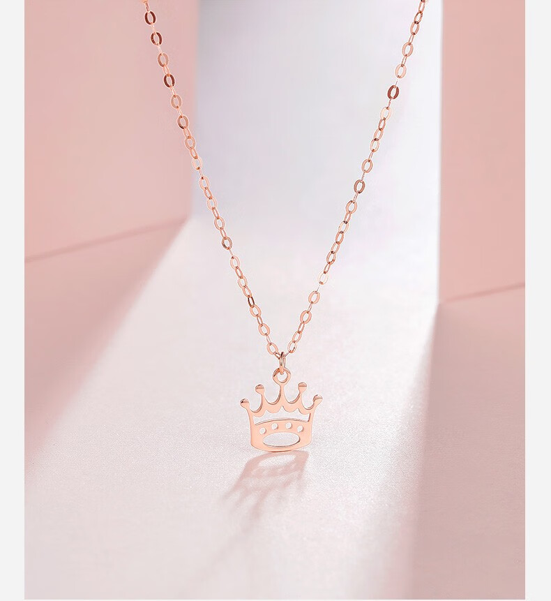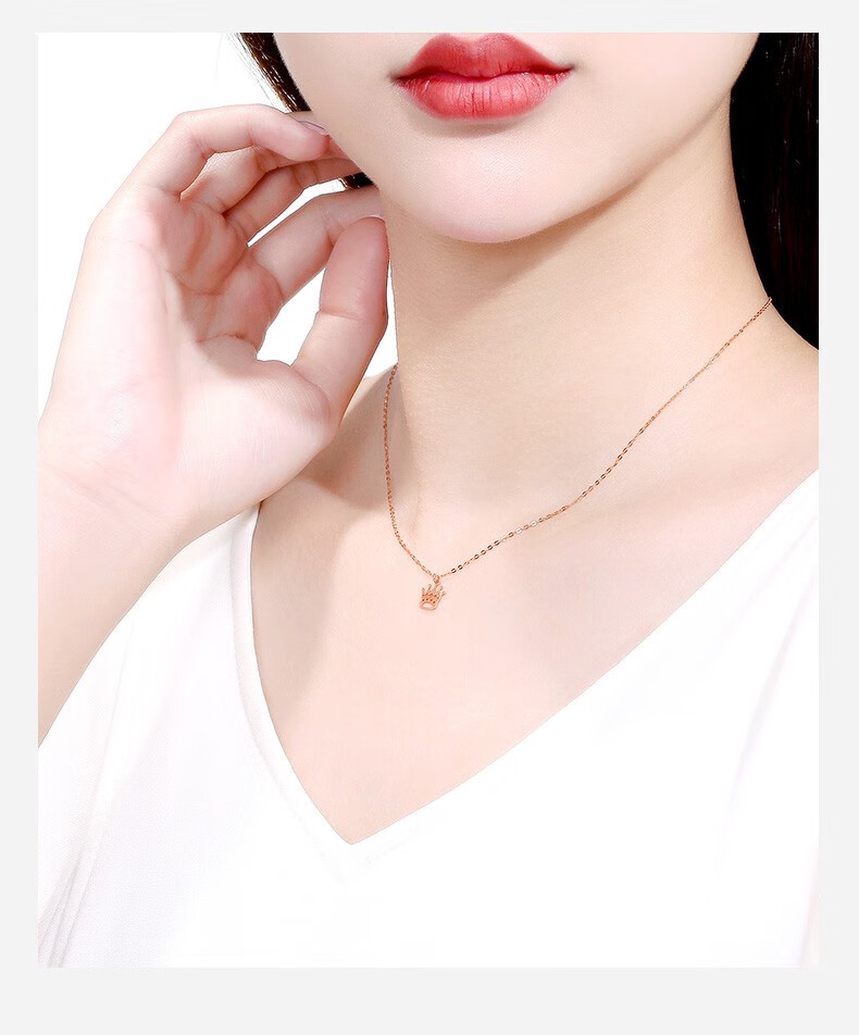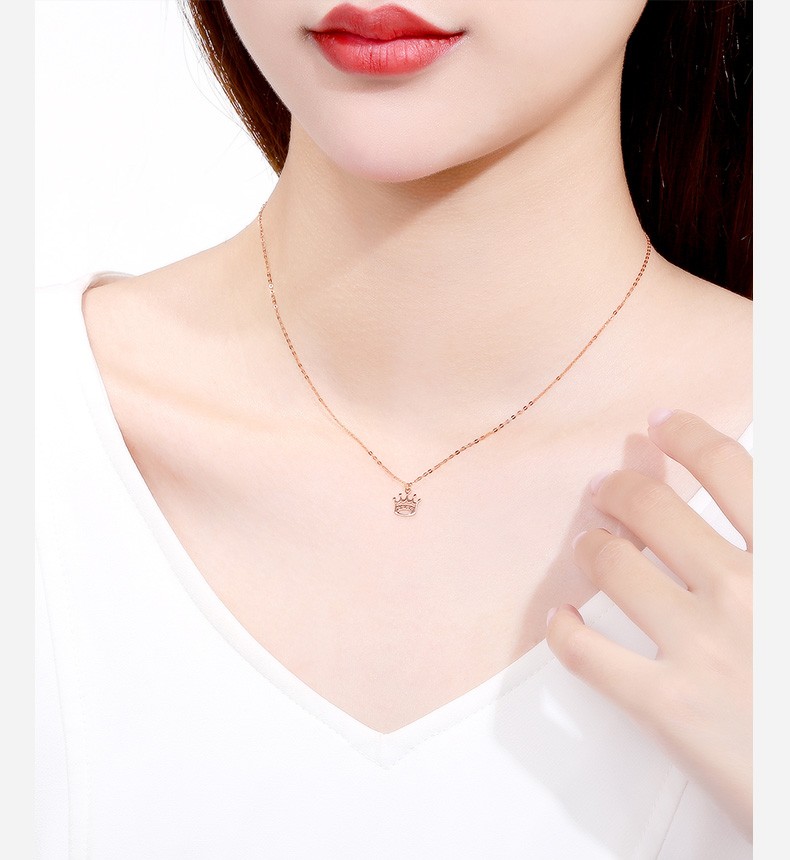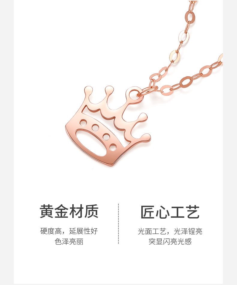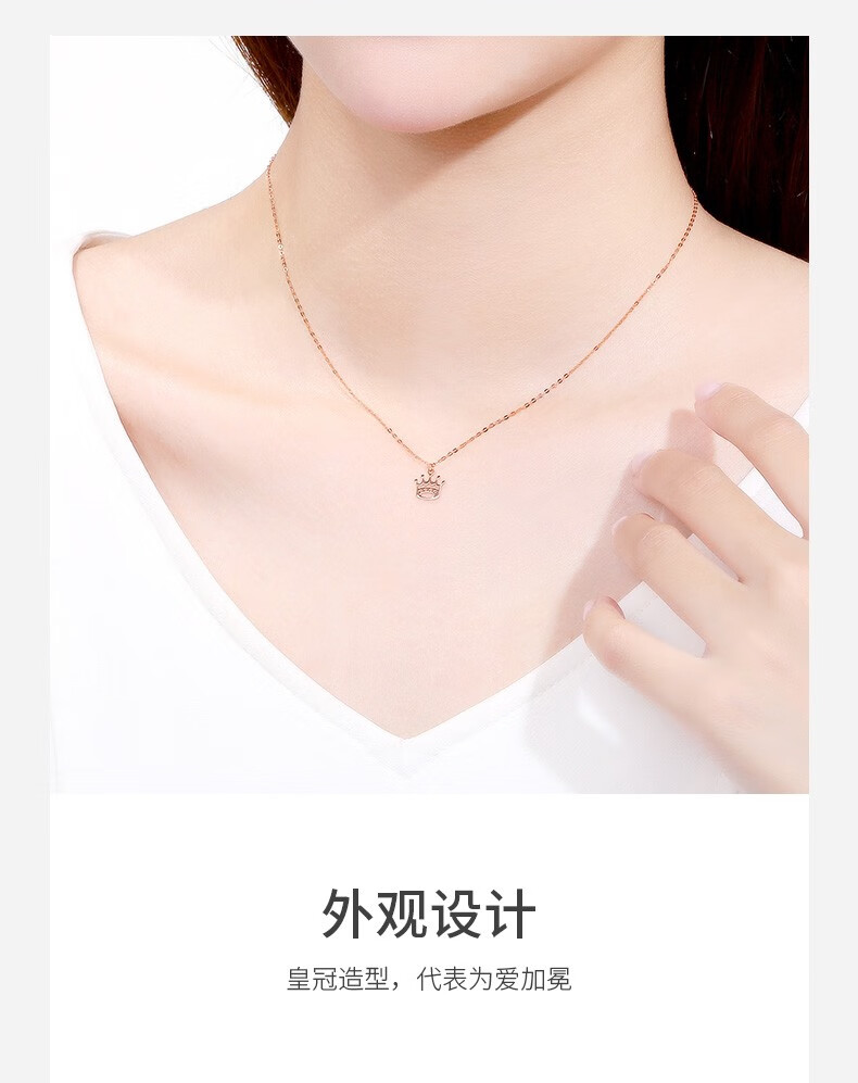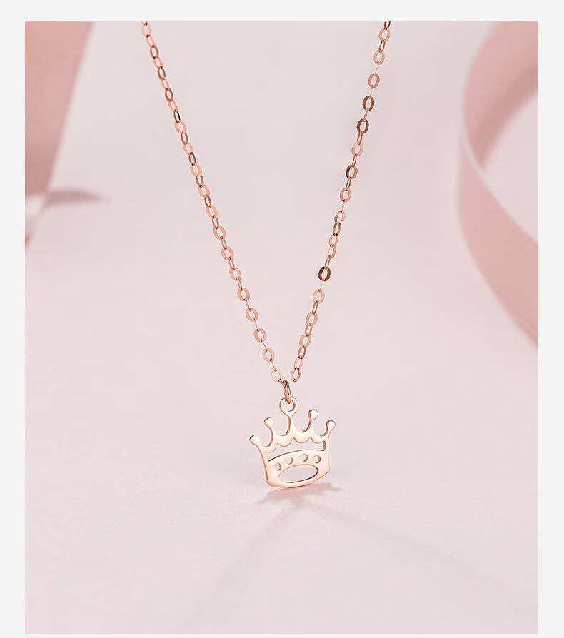 Saturday Fortune (ZLF) 18K gold necklace for women rose gold crown color gold pendant clavicle chain 42cm +3cm