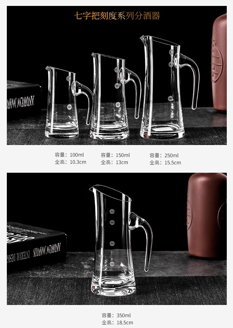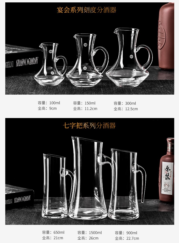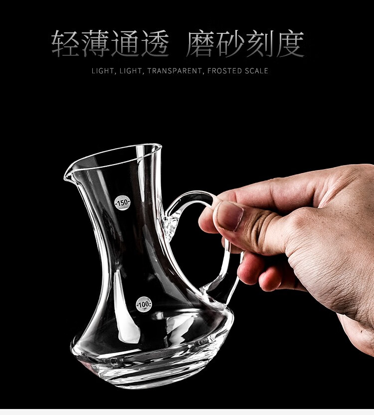 BODDINGTONS liquor dispenser, red wine decanter, wine container, household pot, crystal glass handmade wine set with scale, 7-character handle, 150ml with scale, single price
