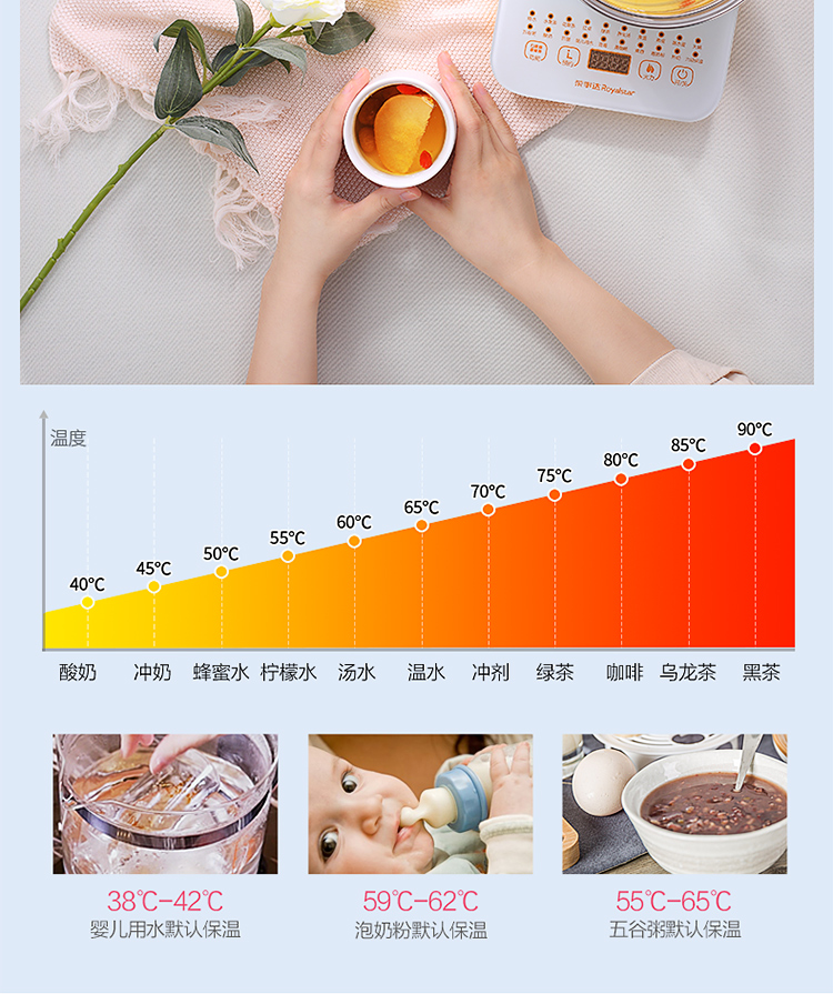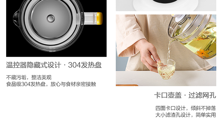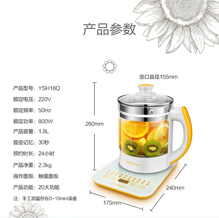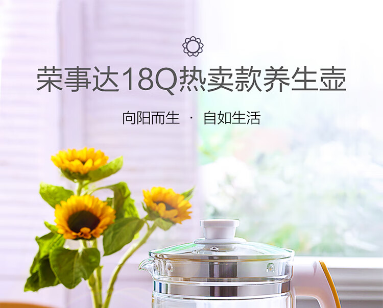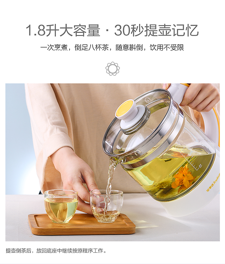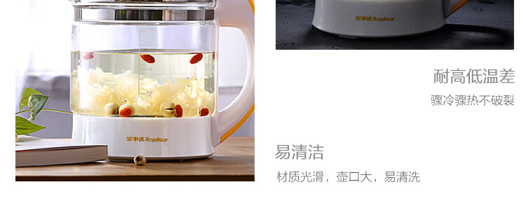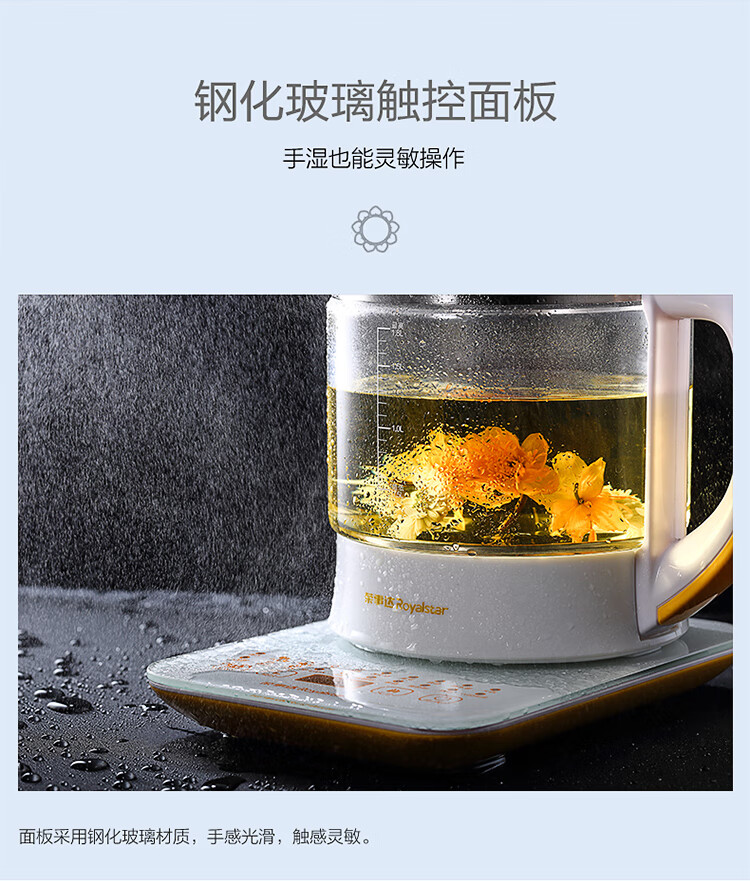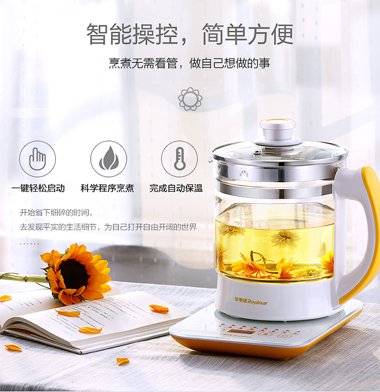 Royalstar health pot household 1.8L fully automatic multi-function appointment thickened glass flower teapot office small tea maker health pot medicated meal pot insulation milk powder pot milk regulator 20 major functions filter cover without filter 1.8L