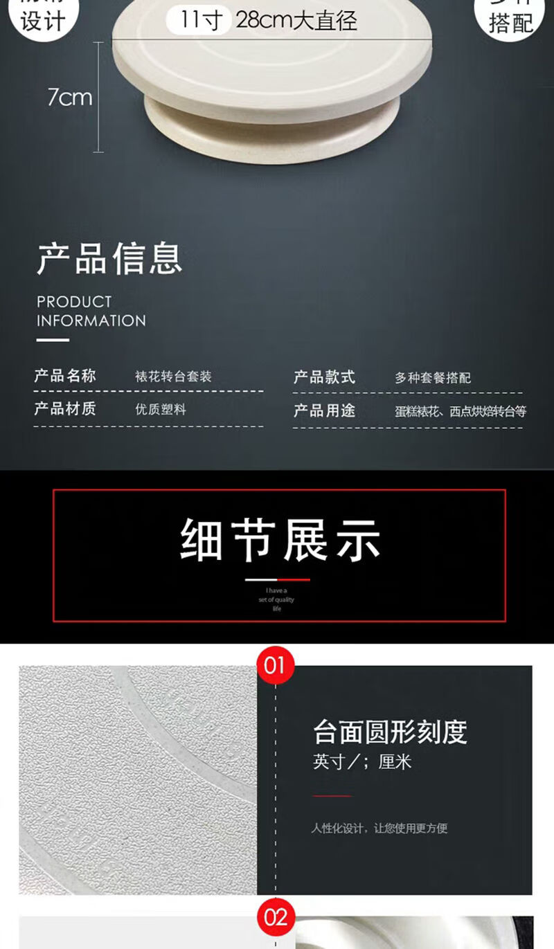 Birthday cake turntable home 11-inch with anti-slip decorating table for making cake turntable turntable baking tools full set B package