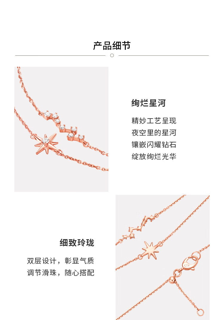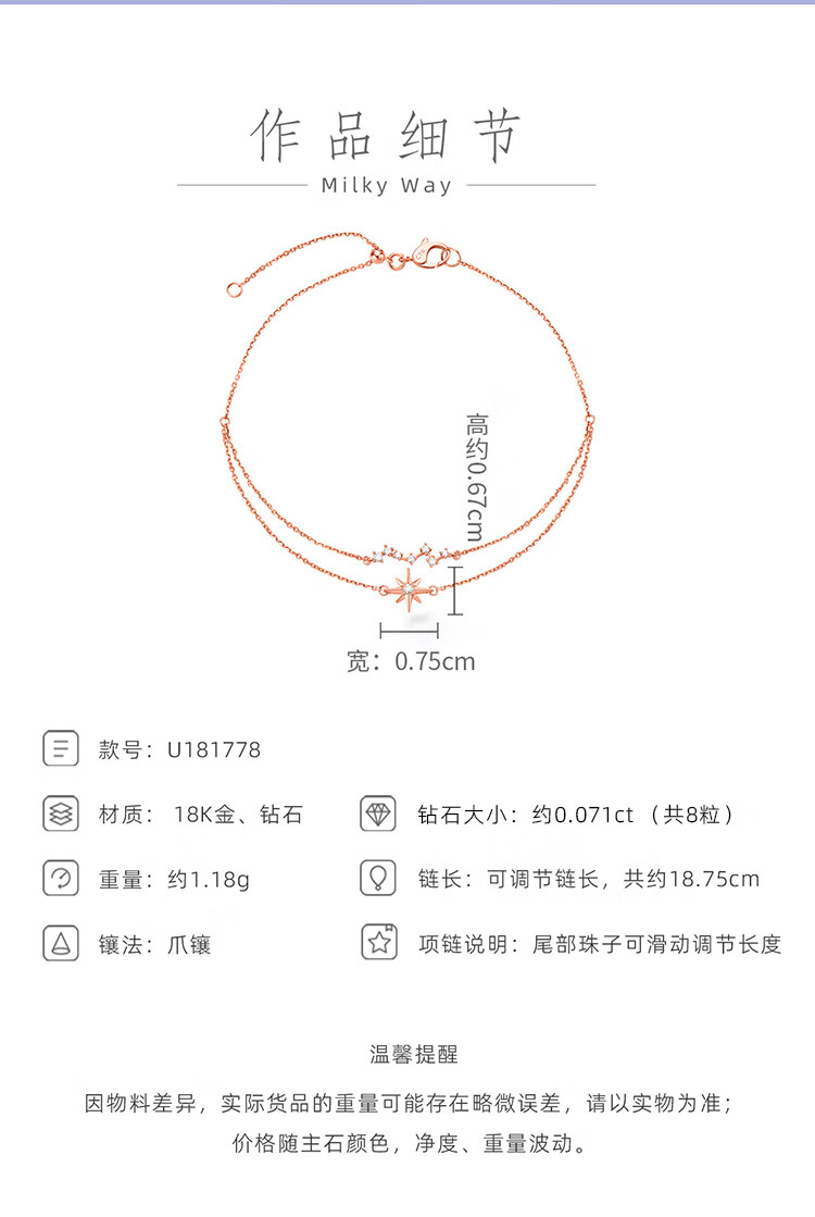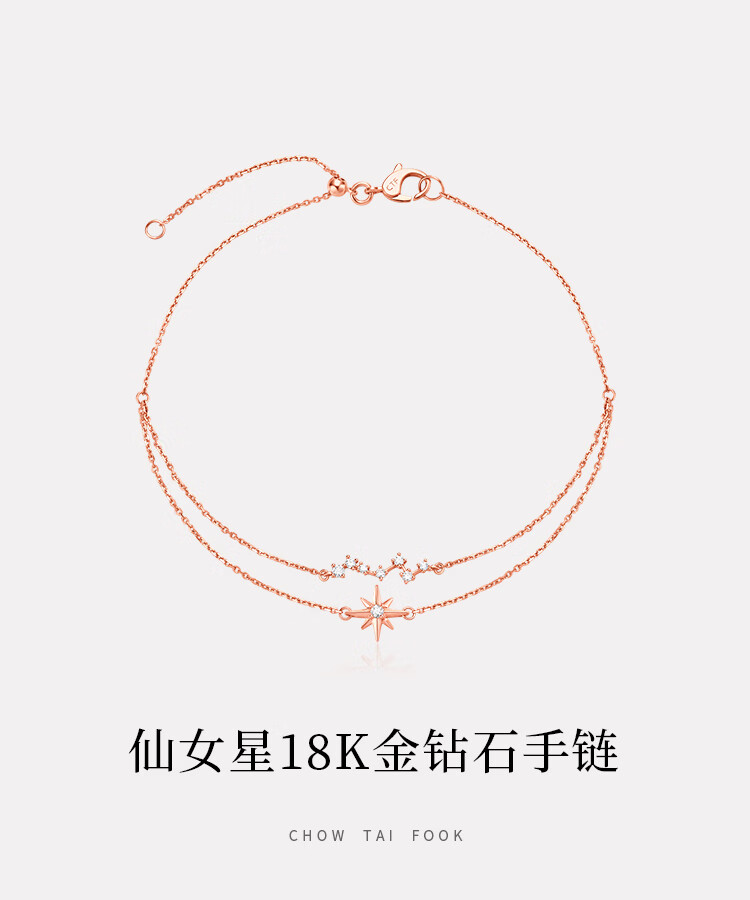 Chow Tai Fook Y Era Galaxy Stars Fairy Star 18K Gold Diamond Double Layer Bracelet U181778 18.75cm