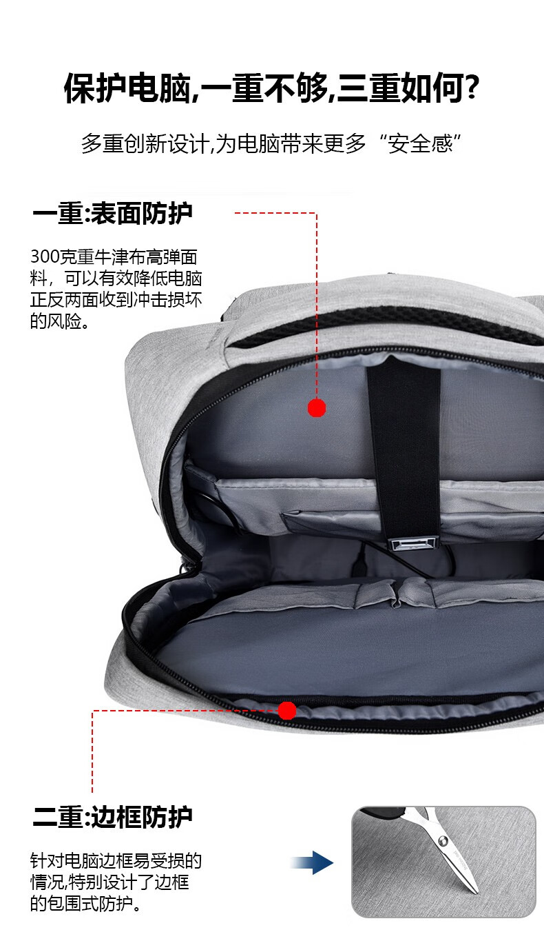 Qingxi Backpack Laptop Bag 17.3 Inch Gaming Backpack Suitable for Savior Y9000P Tianxuan 6pro Light Gray Expanded Cup Compartment + Back Pocket + SBS Zipper 17.3 Inch