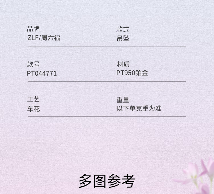 Saturday Fortune (ZLF) platinum pendant women's platinum PT950 butterfly dancing tassel pendant without chain 1.48g