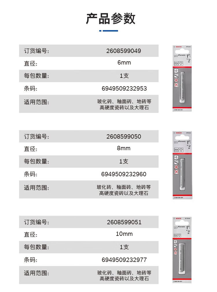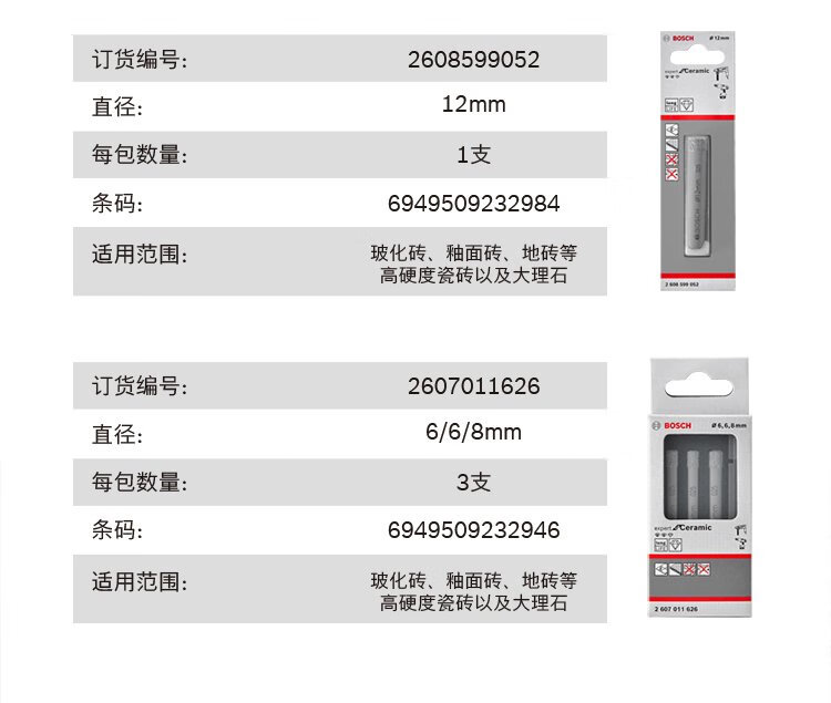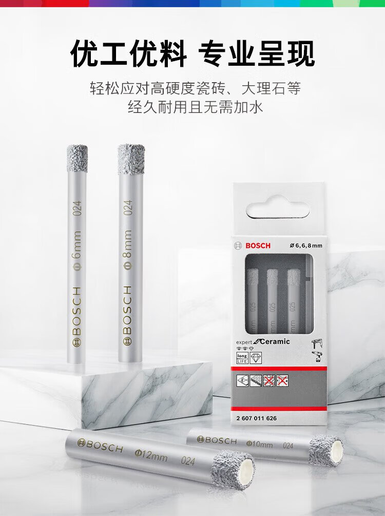 Bosch (BOSCH) brazed diamond hole drill bit marble floor tile vitrified tile tile hole opener drill bit set (6/6/8mm)