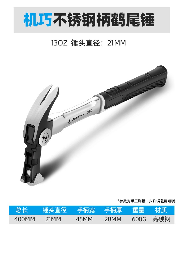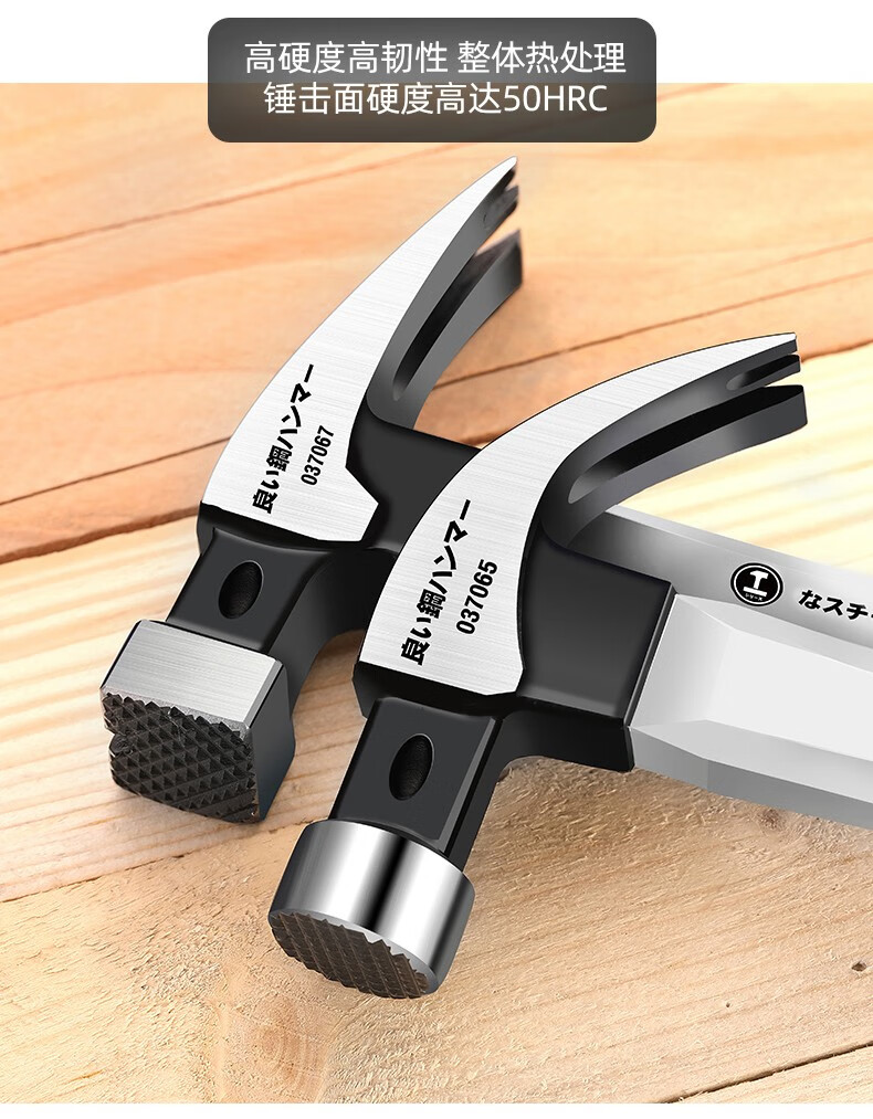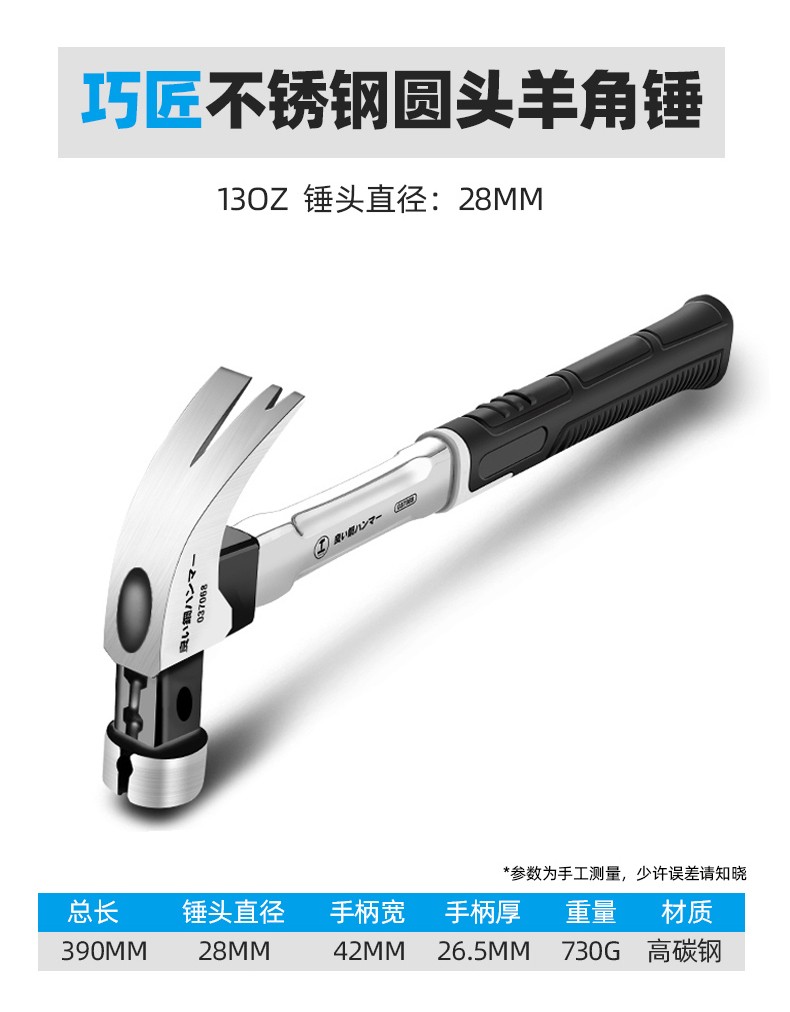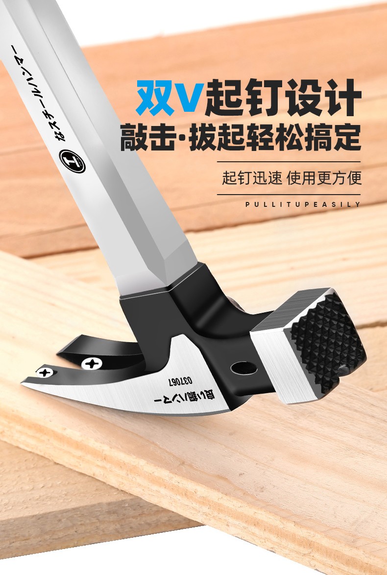 GREENER multifunctional claw hammer woodworking hammer nail hammer anti-seismic nail pulling hammer industrial grade multifunctional stainless steel hammer Qiaojiang 13oz round head claw hammer