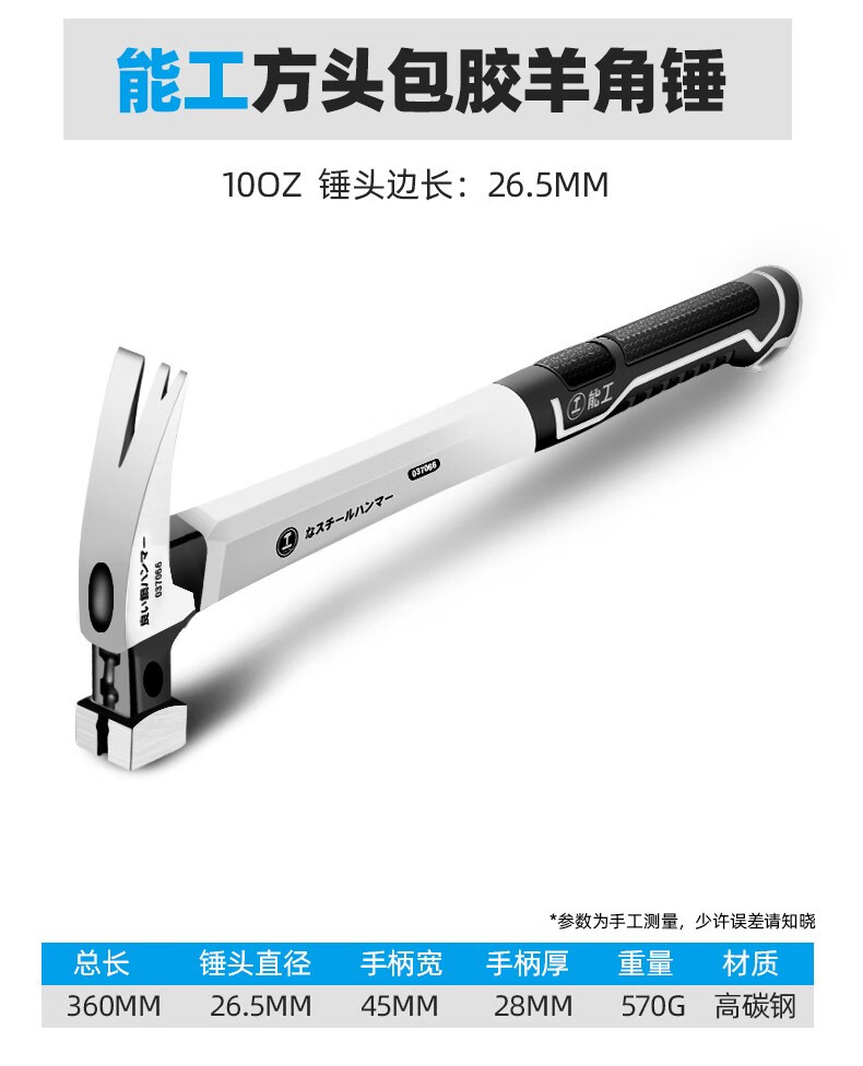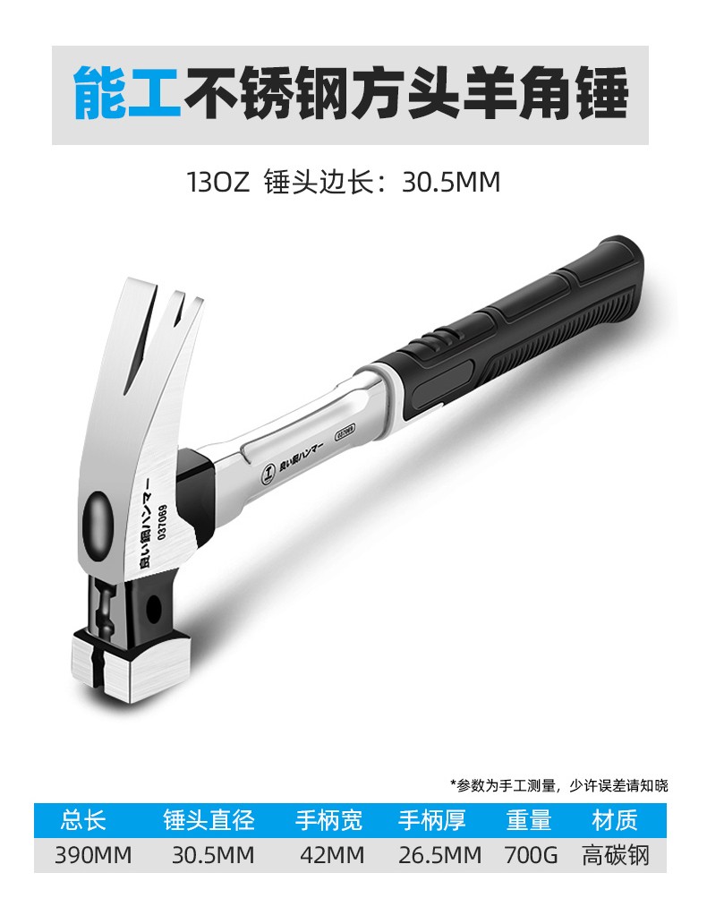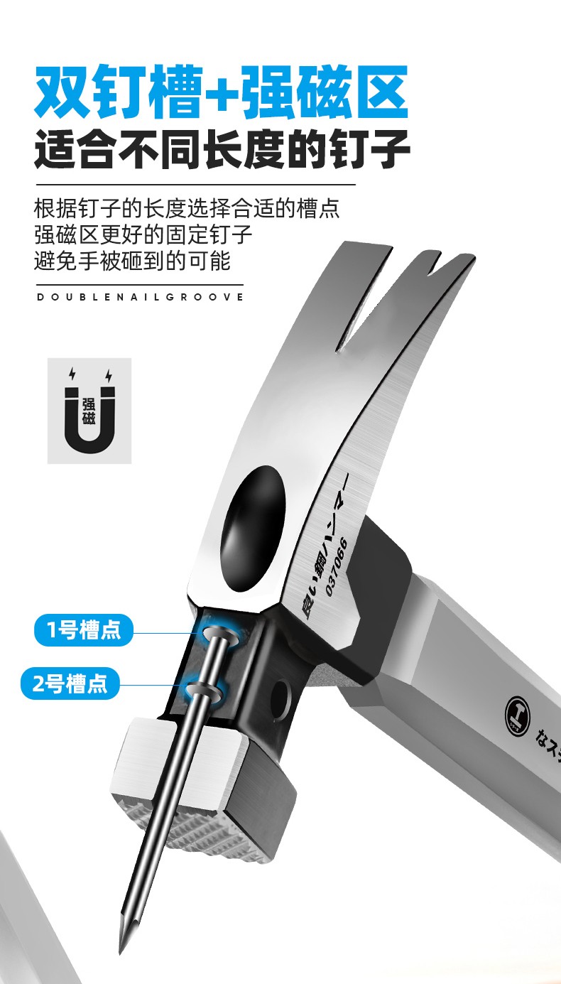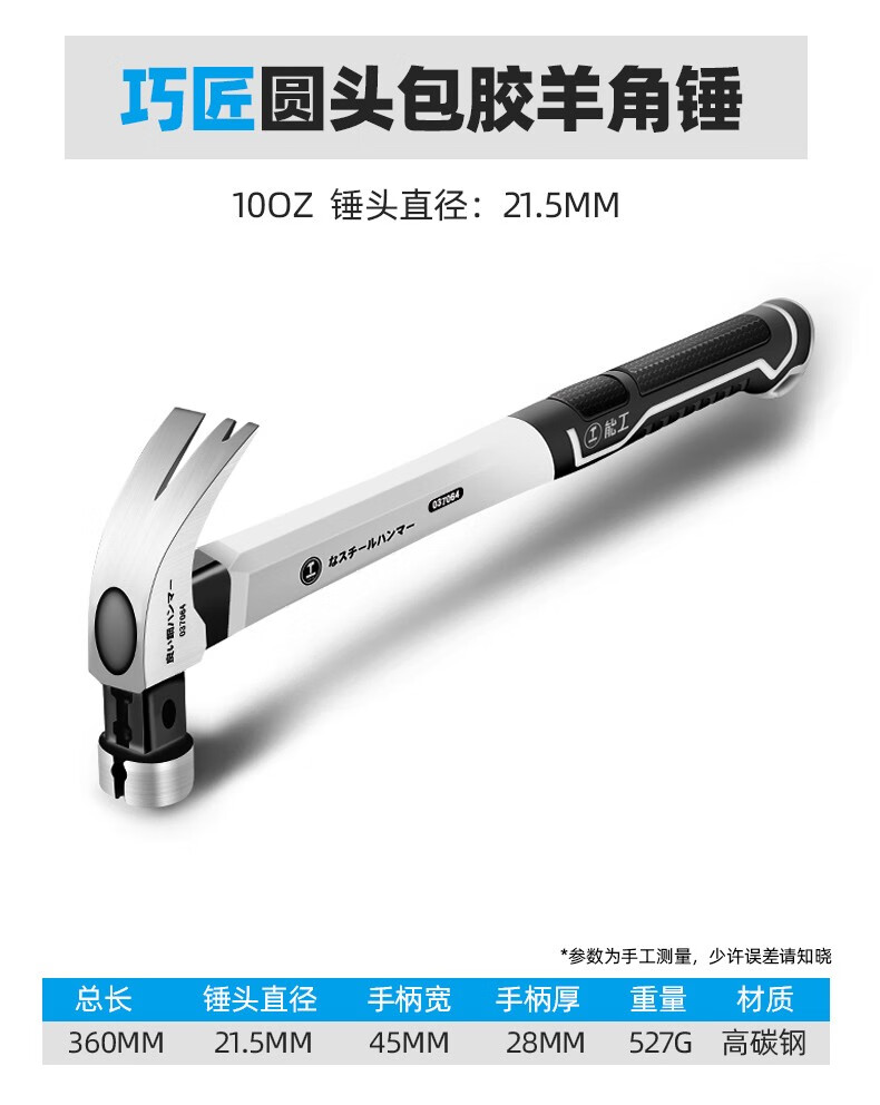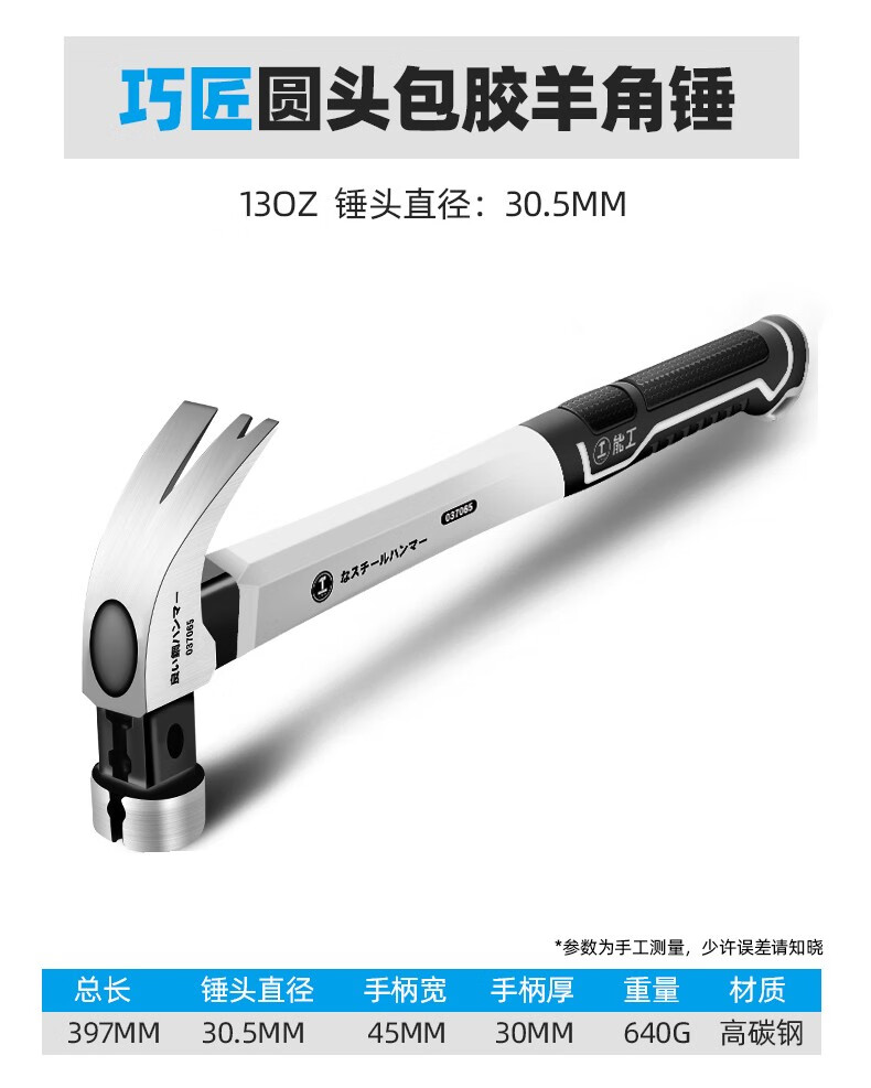 GREENER multifunctional claw hammer woodworking hammer nail hammer anti-seismic nail pulling hammer industrial grade multifunctional stainless steel hammer Qiaojiang 13oz round head claw hammer