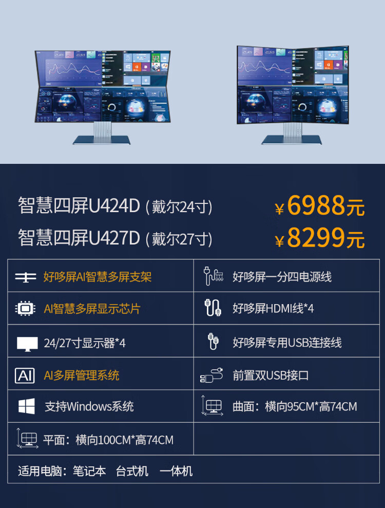 Haoduoping notebook multi-screen professional stock trading computer four-screen five-screen desktop stand stock futures foreign exchange MT4 multi-screen device smart four-screen U424D