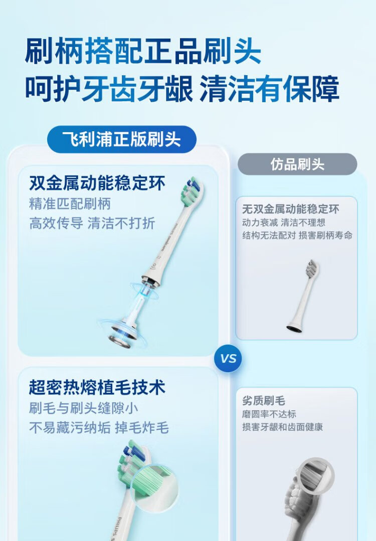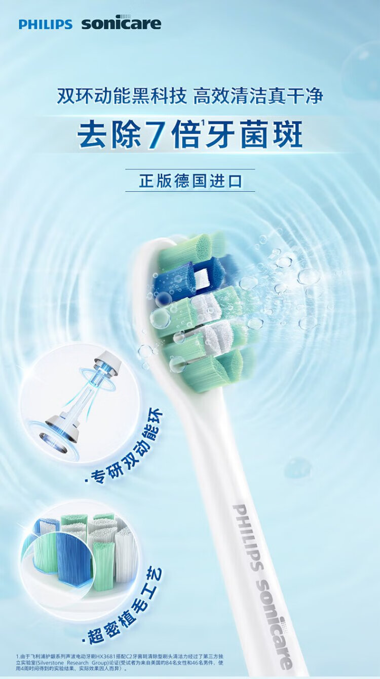 Philips electric toothbrush head 7x plaque removal clean type 3-pack HX9023, suitable for Diamond 3 series HX6/HX3/HX51 series