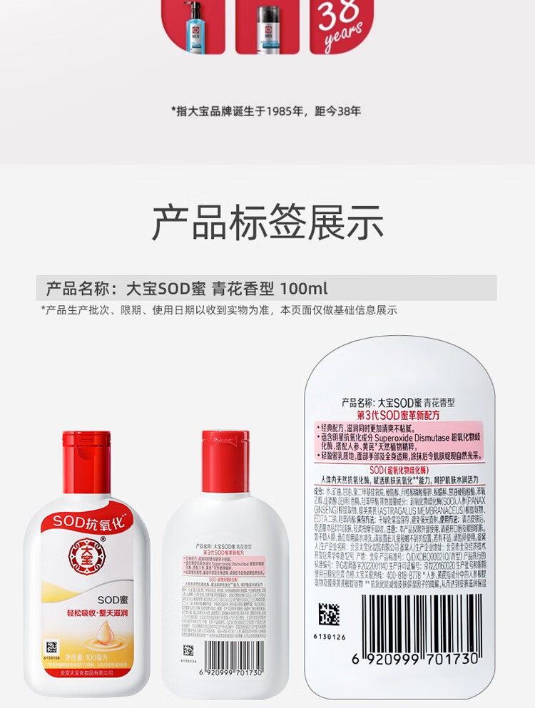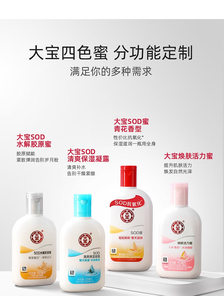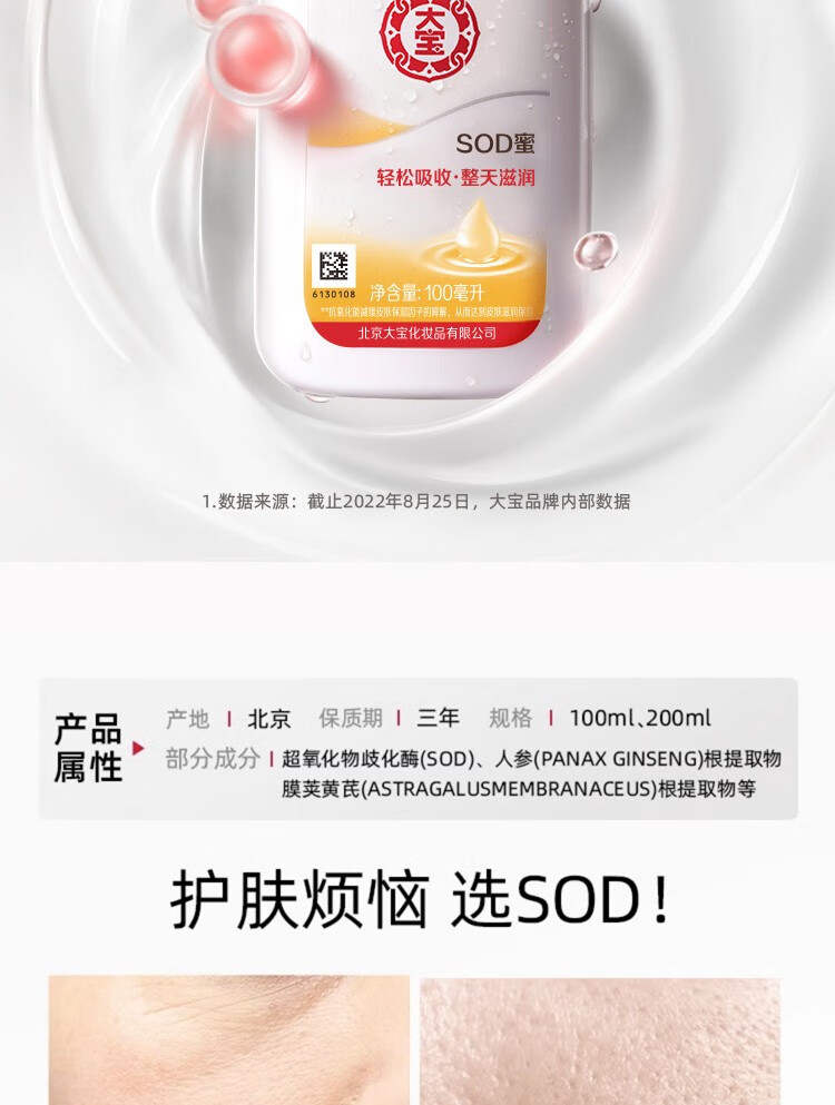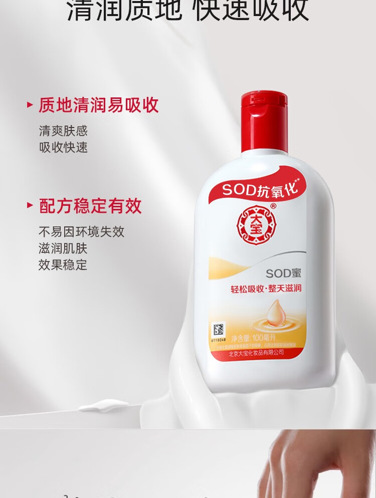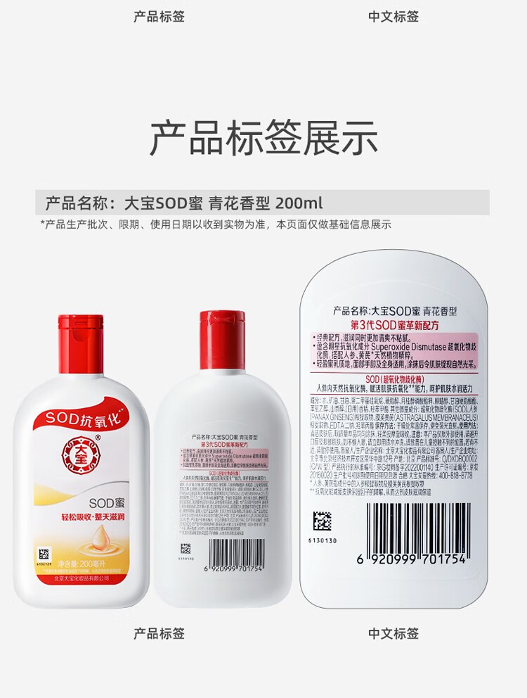 Dabao SOD honey blue and white fragrance moisturizing and moisturizing all day long, refreshing and non-sticky, facial oil, body lotion, face SOD honey 200ml + beauty cleanser 220g