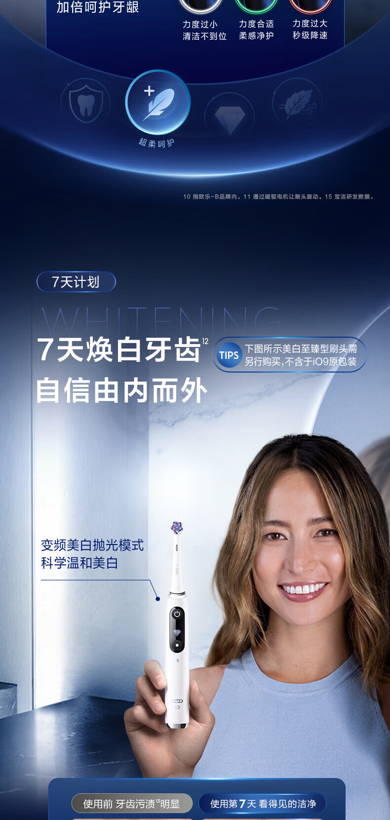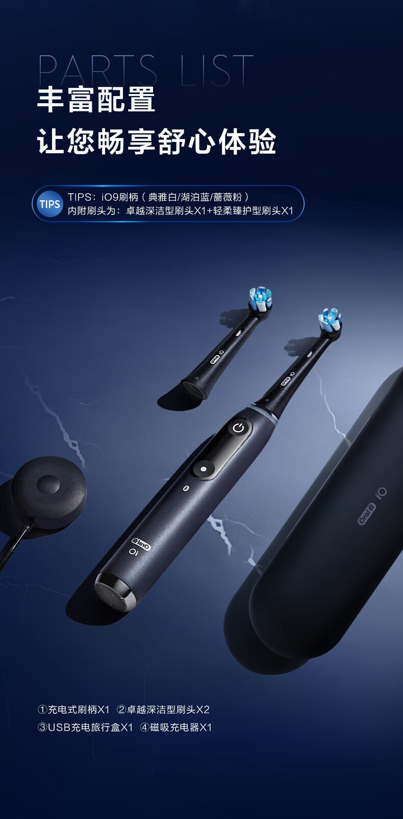 Oral-B Adult Electric Toothbrush iO9 All-Purpose Brush iO Round Head Deep Cleaning Gum Massage Smart Gum Care High-end Practical Gift for Boyfriend or Girlfriend on Birthday Supreme Plus Version | White (Brush Heads*4)