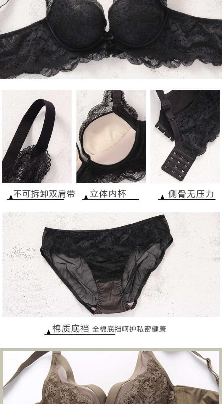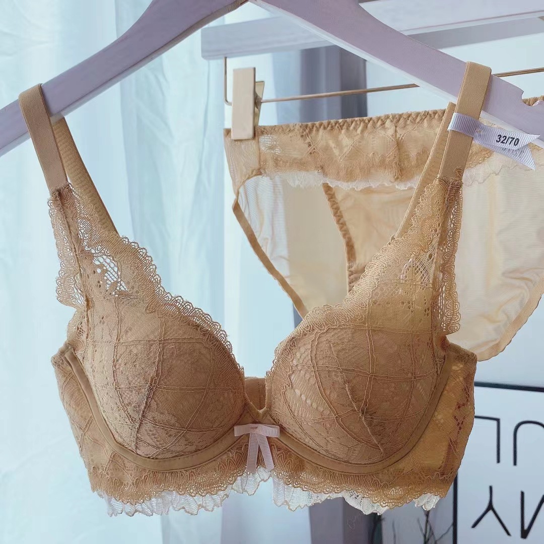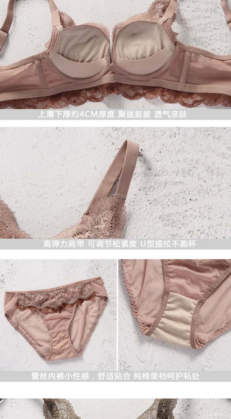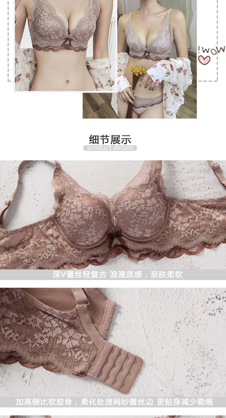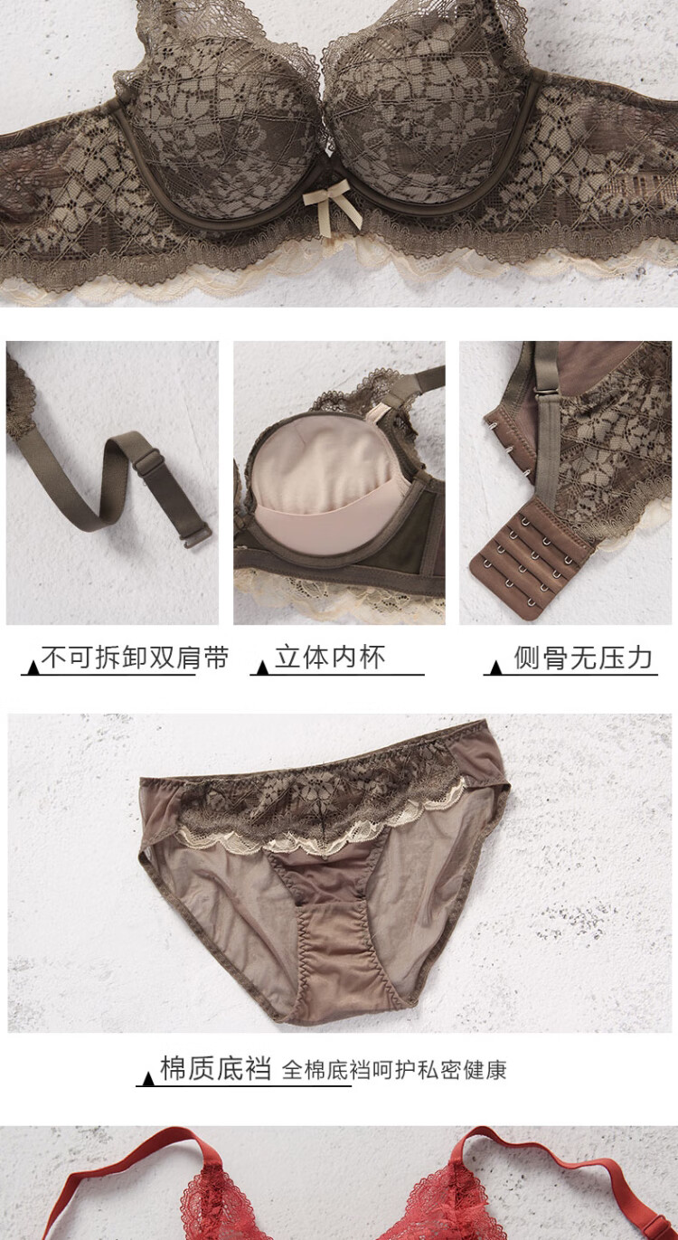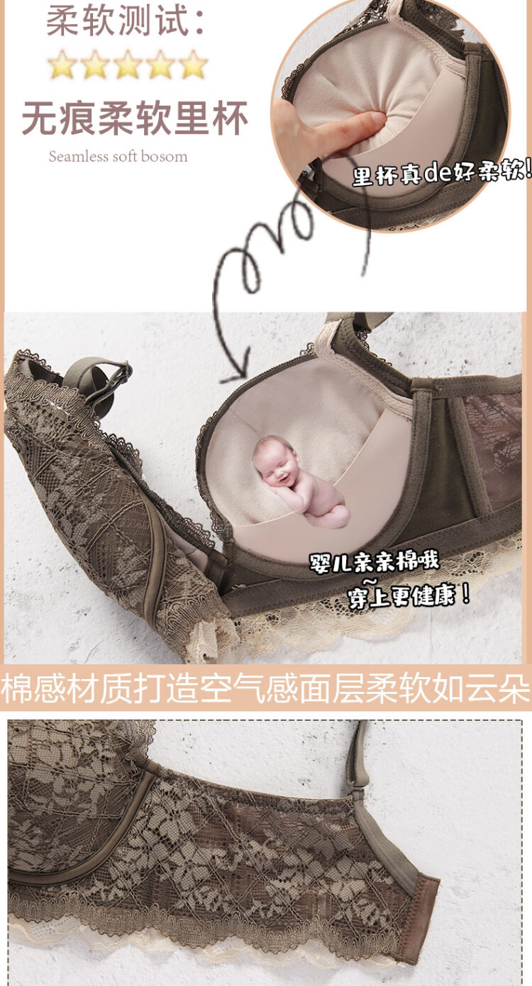 XMXT New Style No Wires Beautiful Back Thickened Lace Bra Women's Push Up Adjustable Anti-Sagging Secondary Breast Support Set Coffee Color Thickened Set 32/70 (AB Tong Cup)