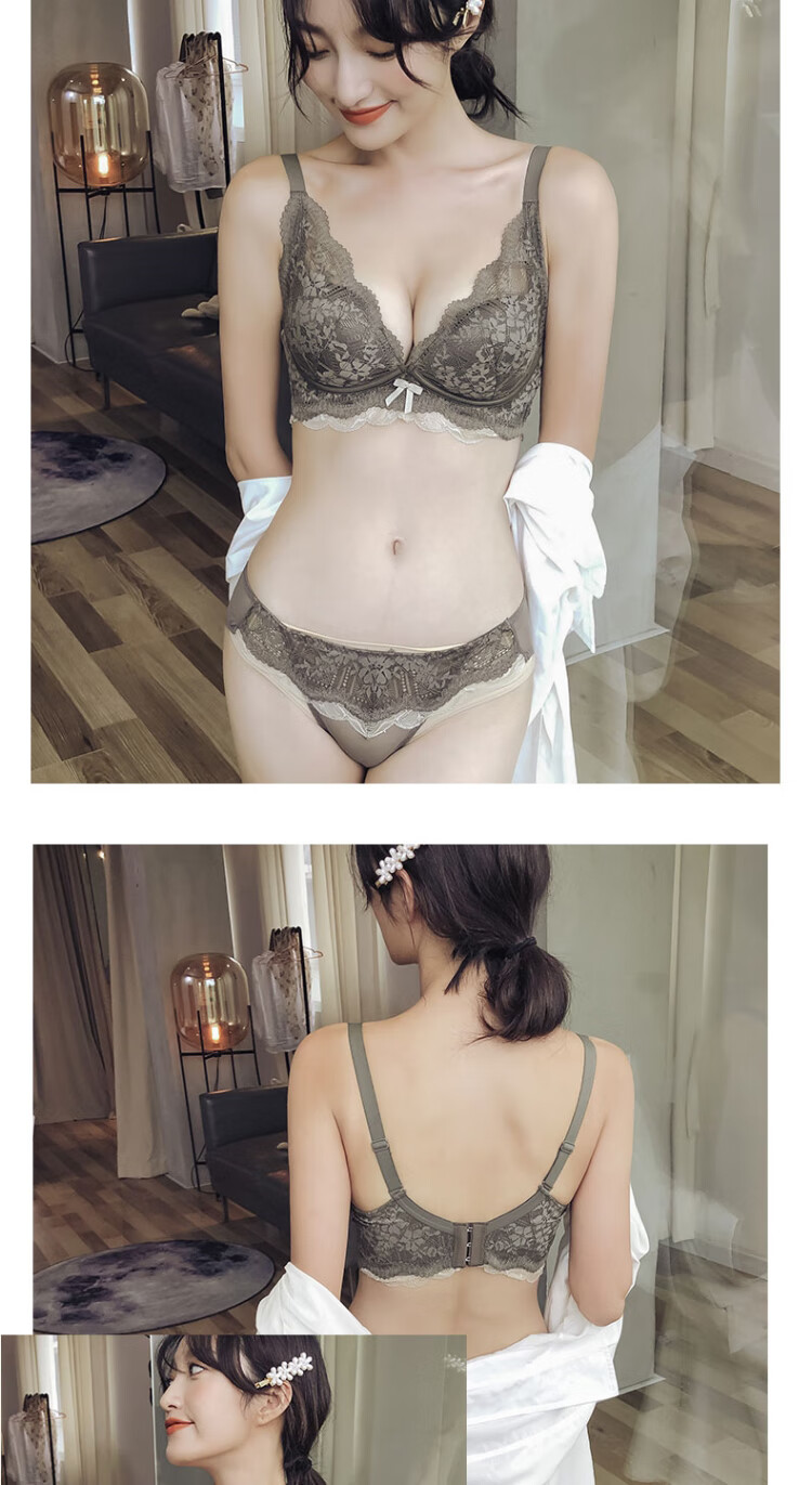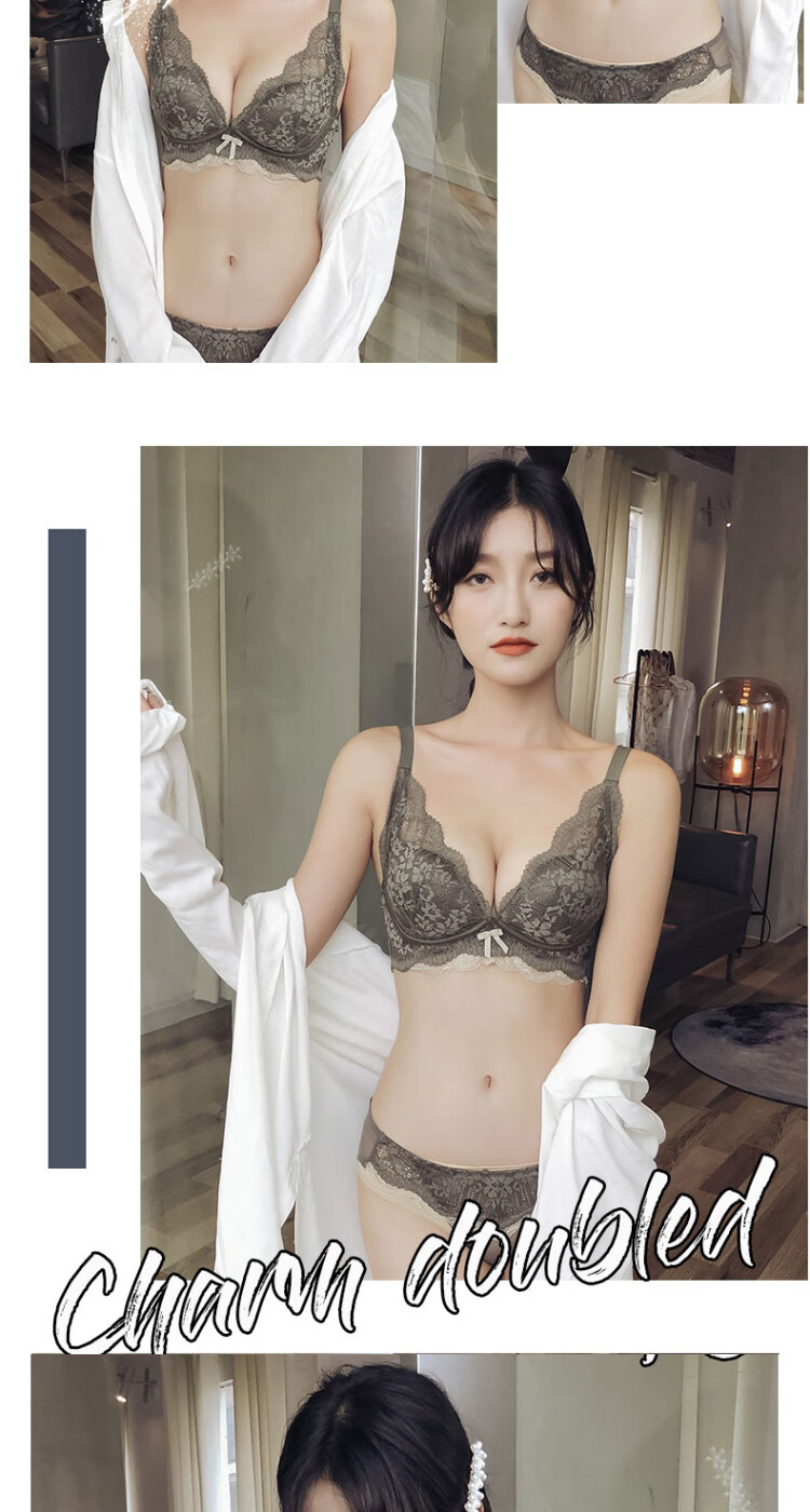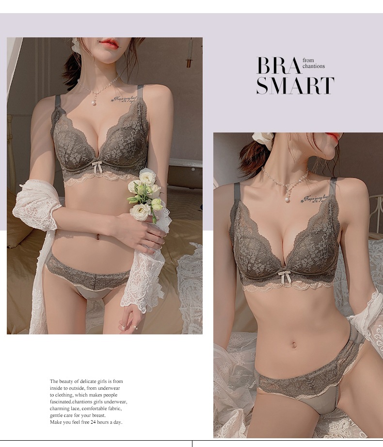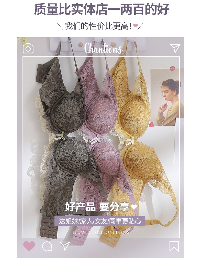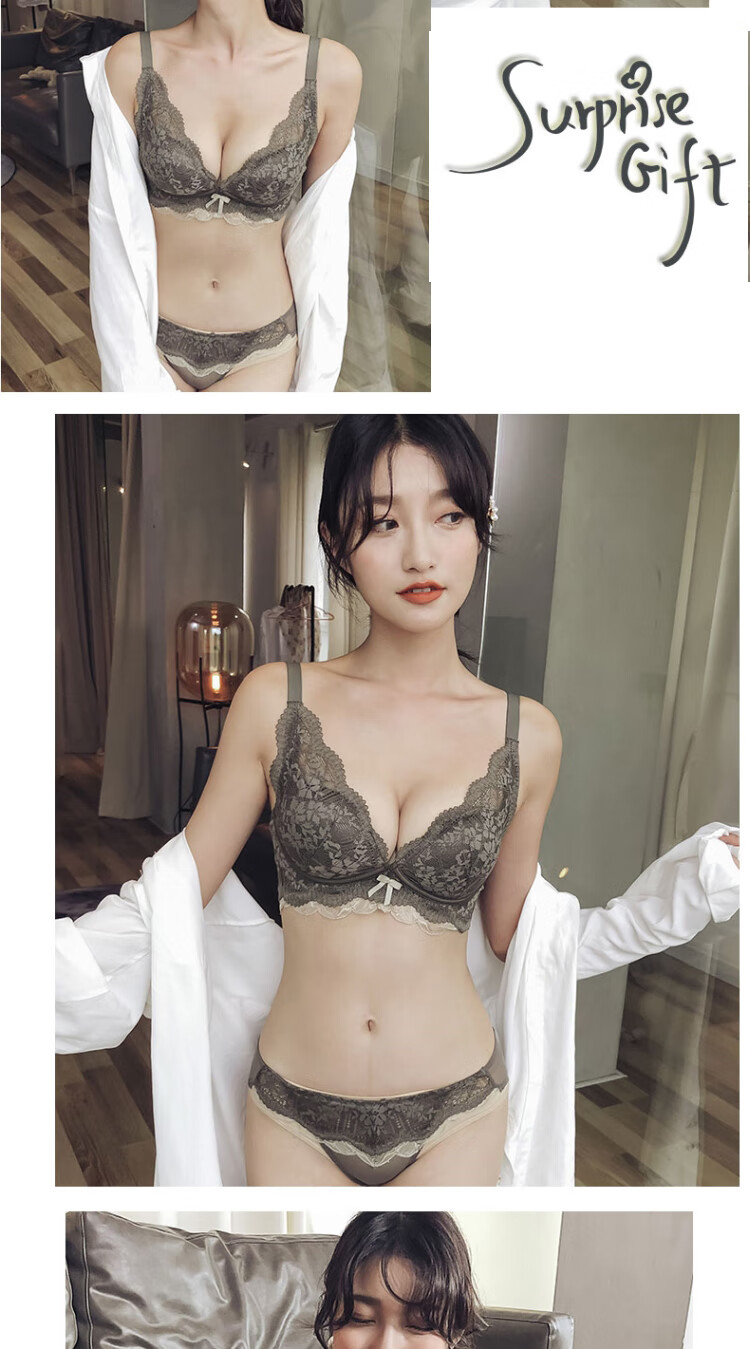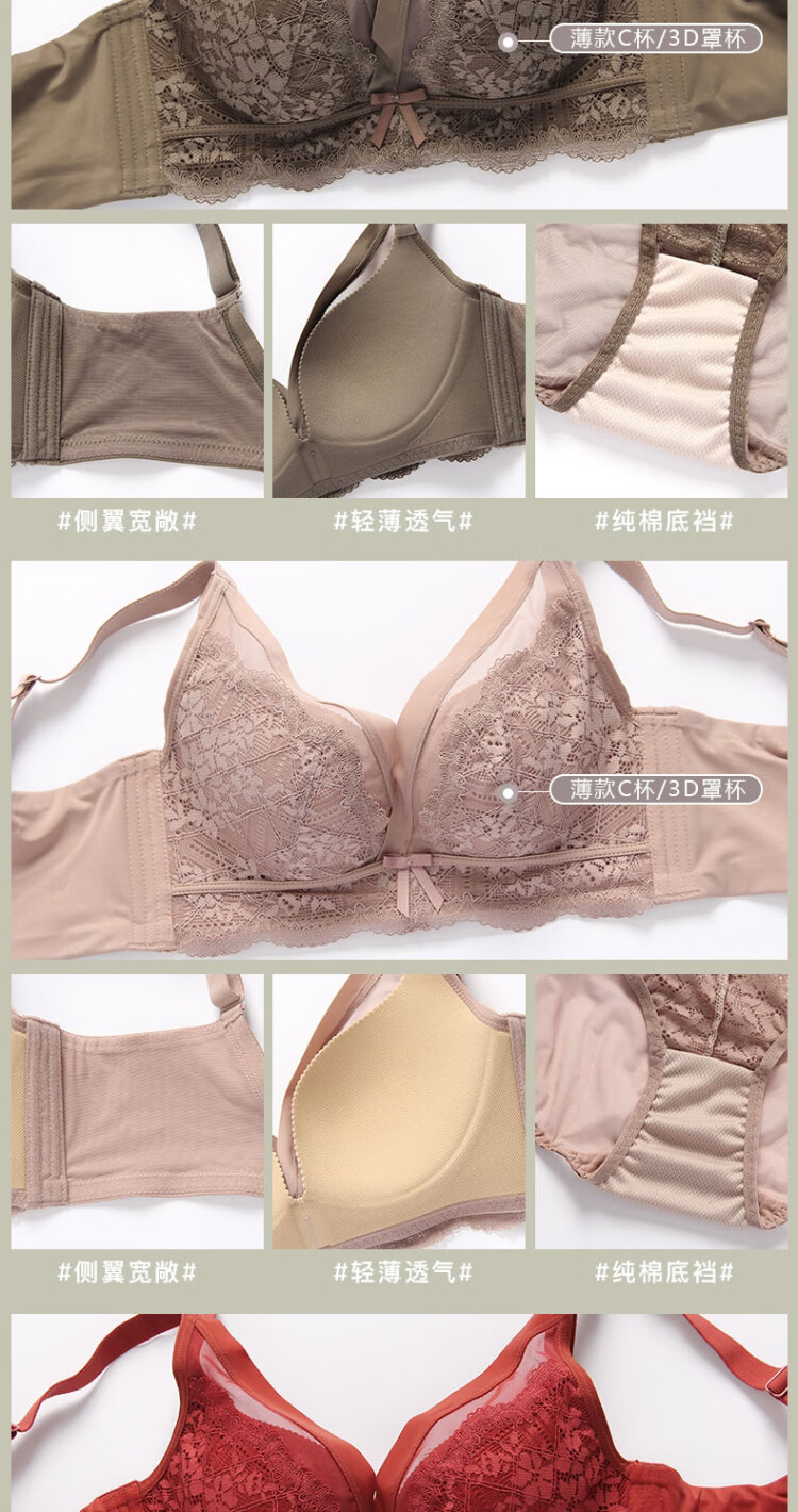 XMXT New Style No Wires Beautiful Back Thickened Lace Bra Women's Push Up Adjustable Anti-Sagging Secondary Breast Support Set Coffee Color Thickened Set 32/70 (AB Tong Cup)