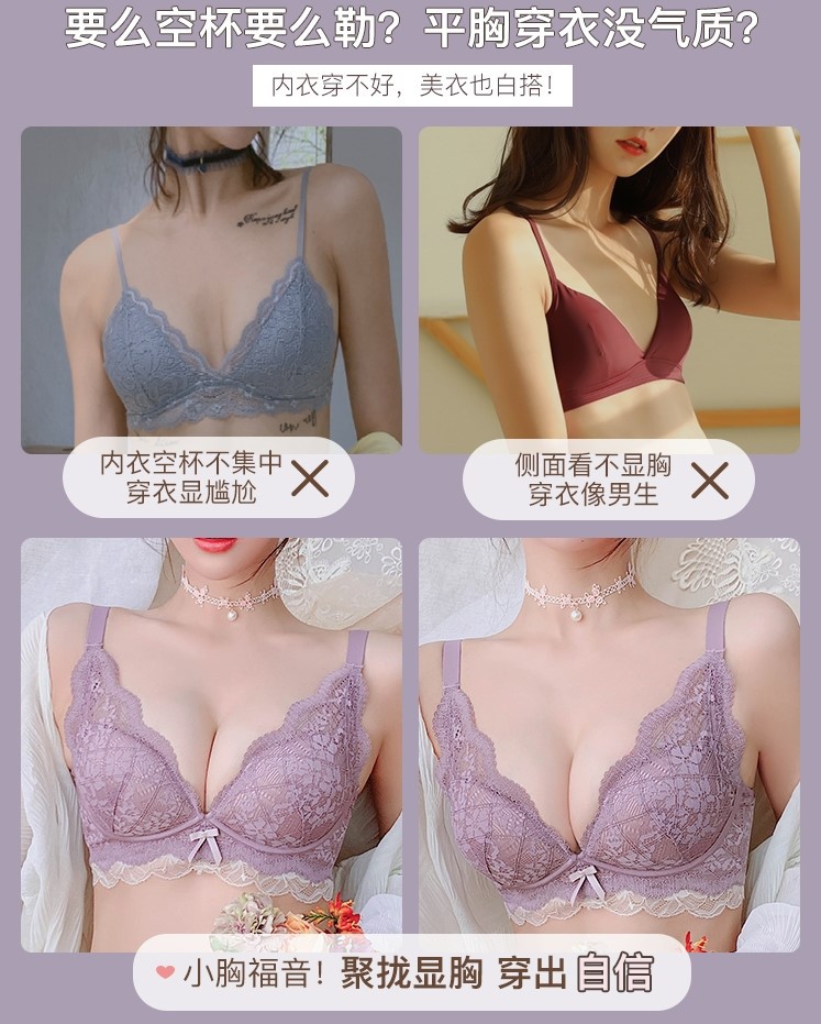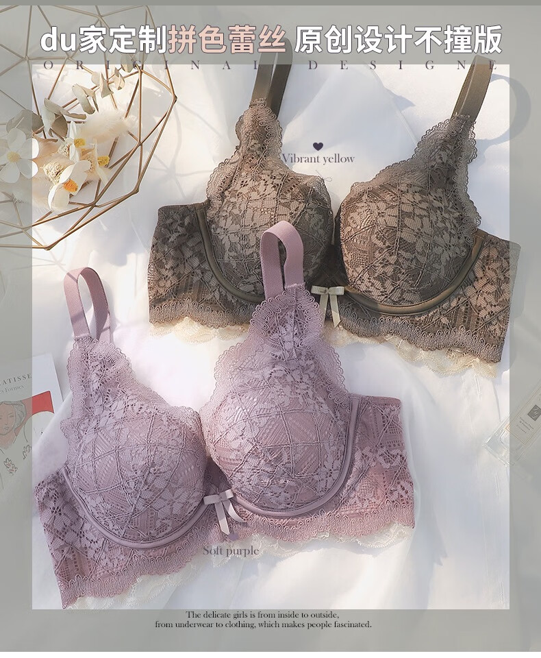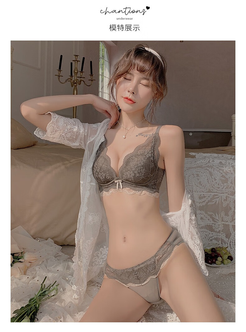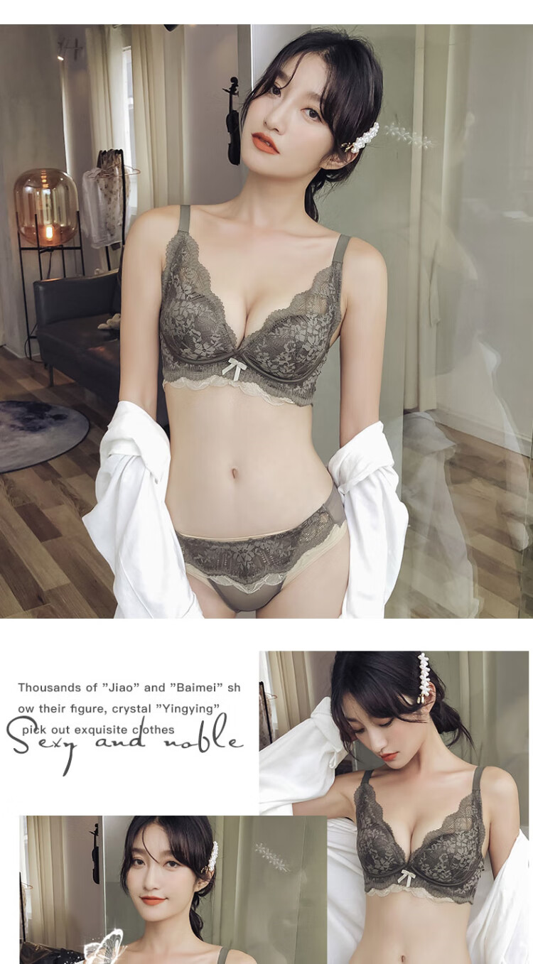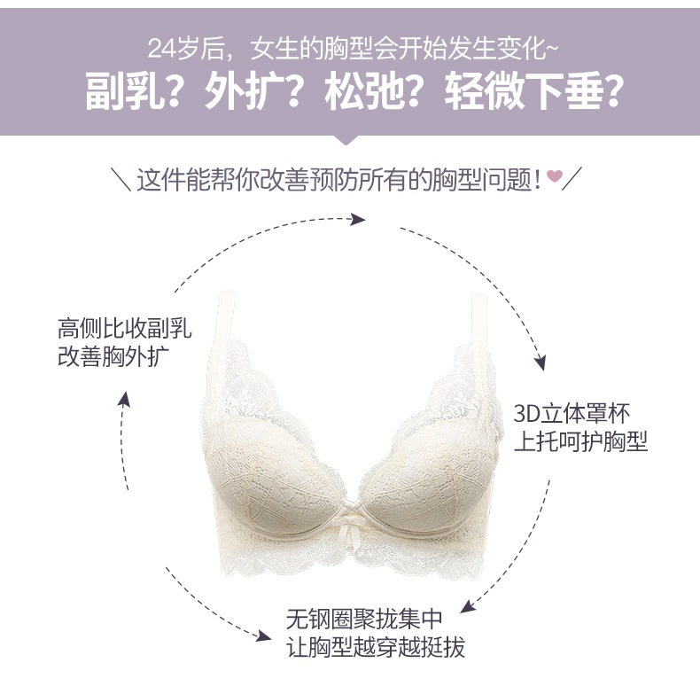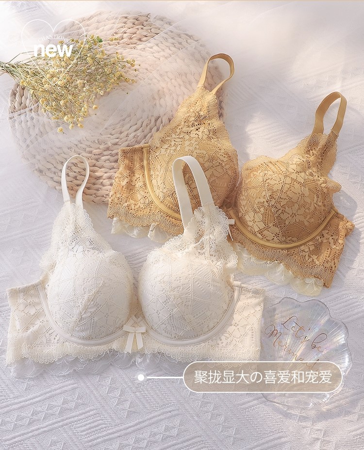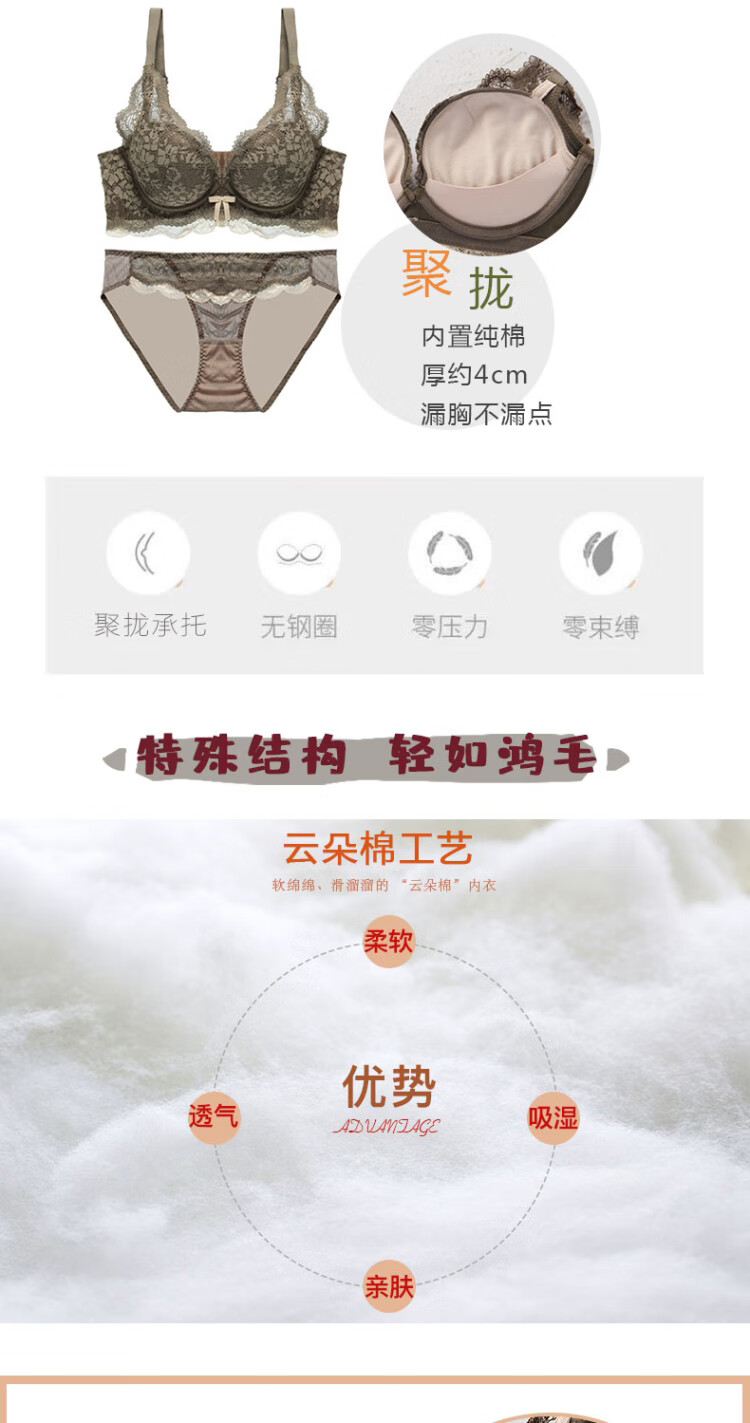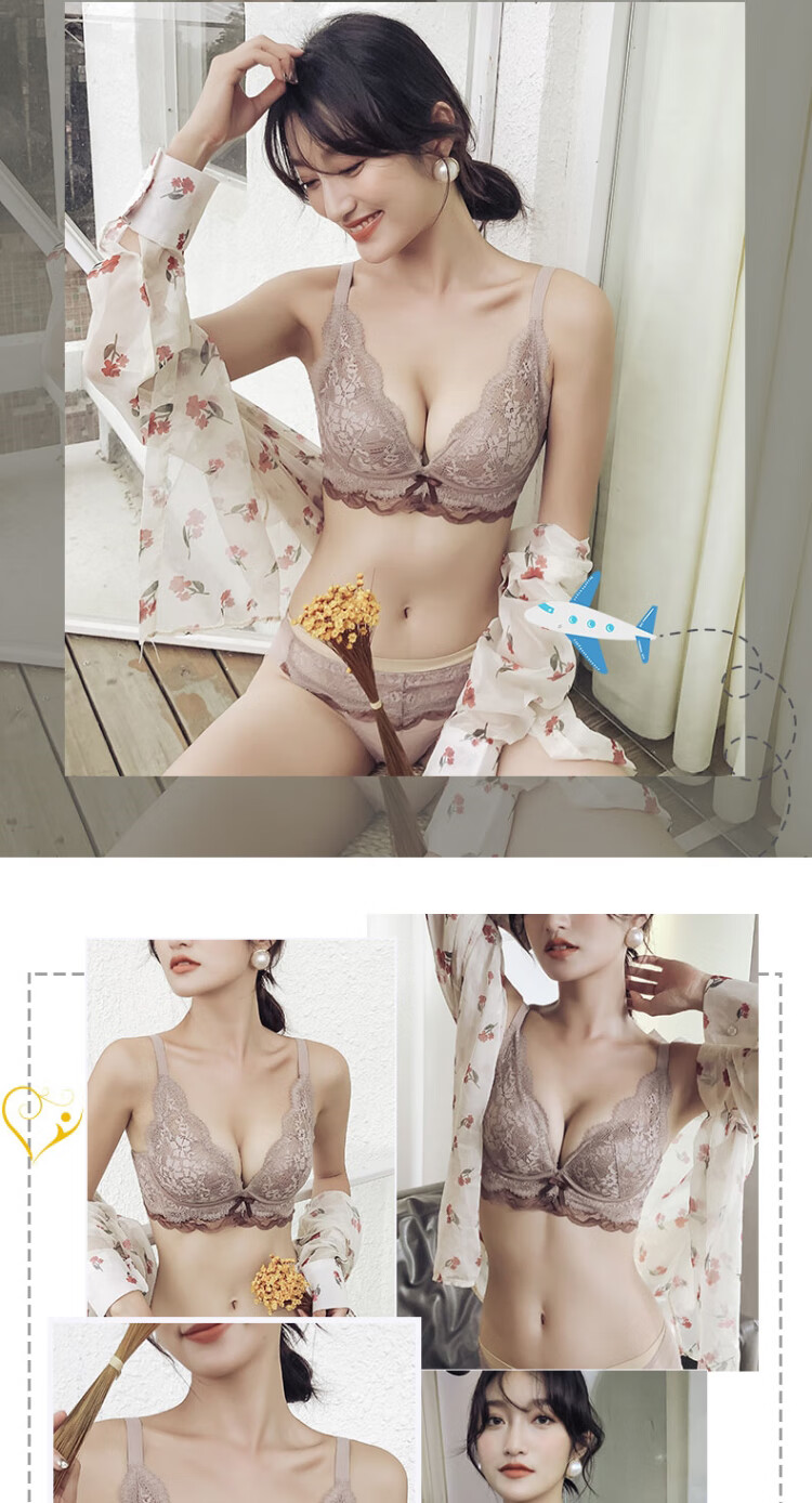 XMXT New Style No Wires Beautiful Back Thickened Lace Bra Women's Push Up Adjustable Anti-Sagging Secondary Breast Support Set Coffee Color Thickened Set 32/70 (AB Tong Cup)