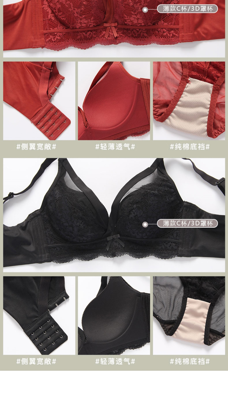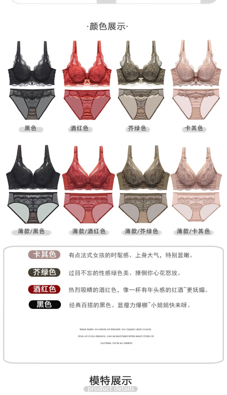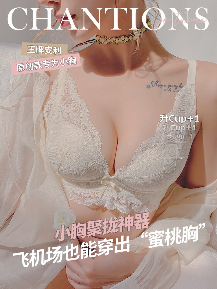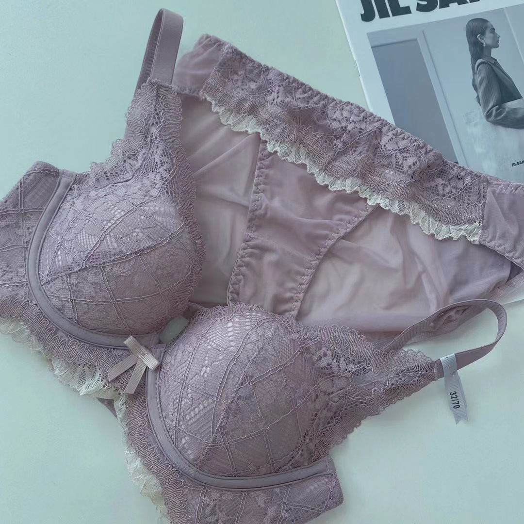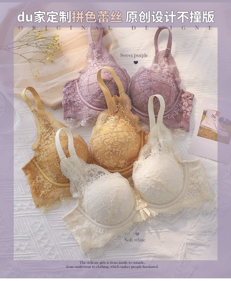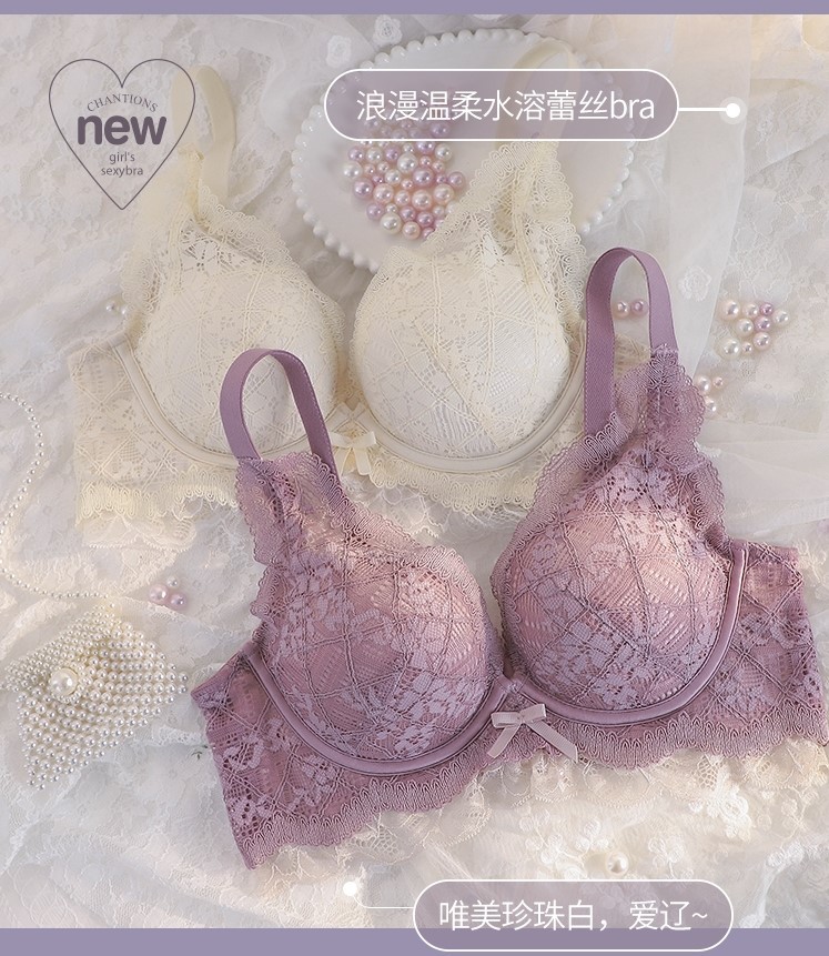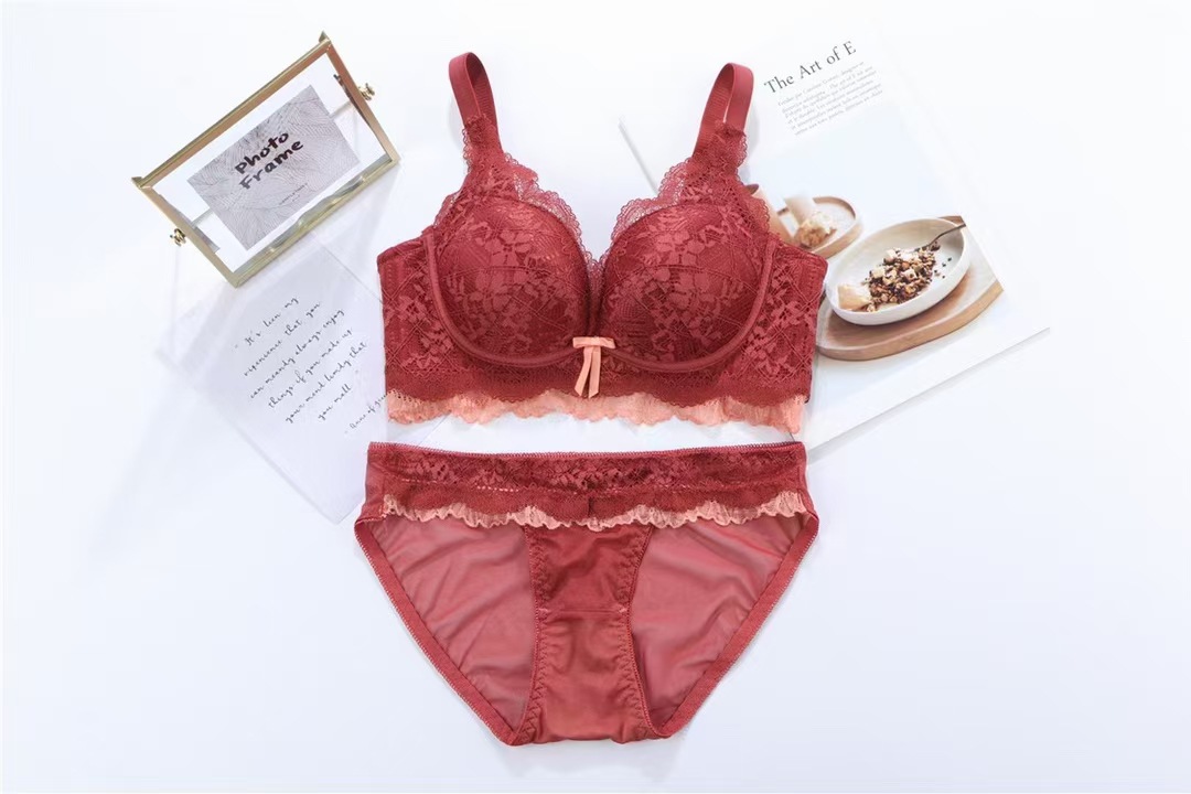 XMXT New Style No Wires Beautiful Back Thickened Lace Bra Women's Push Up Adjustable Anti-Sagging Secondary Breast Support Set Coffee Color Thickened Set 32/70 (AB Tong Cup)