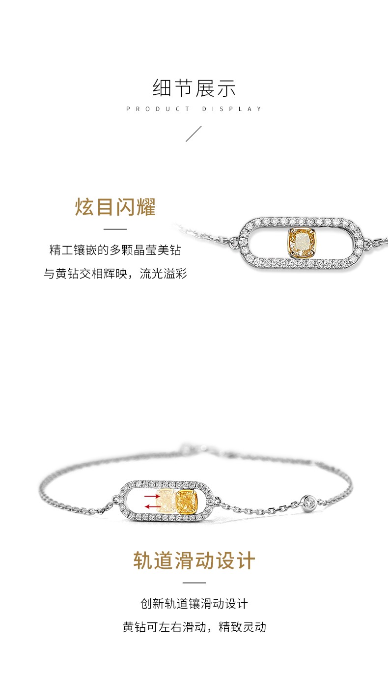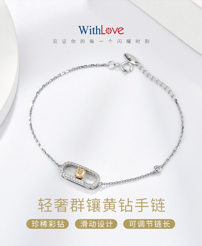 WithLove Sliding Yellow Diamond Diamond Bracelet Natural Genuine 18K Color Gold Group Set Simple Temperament Women Main Diamond 22 Points/Secondary Diamond 16 Points White 18K Gold/Ready Stock