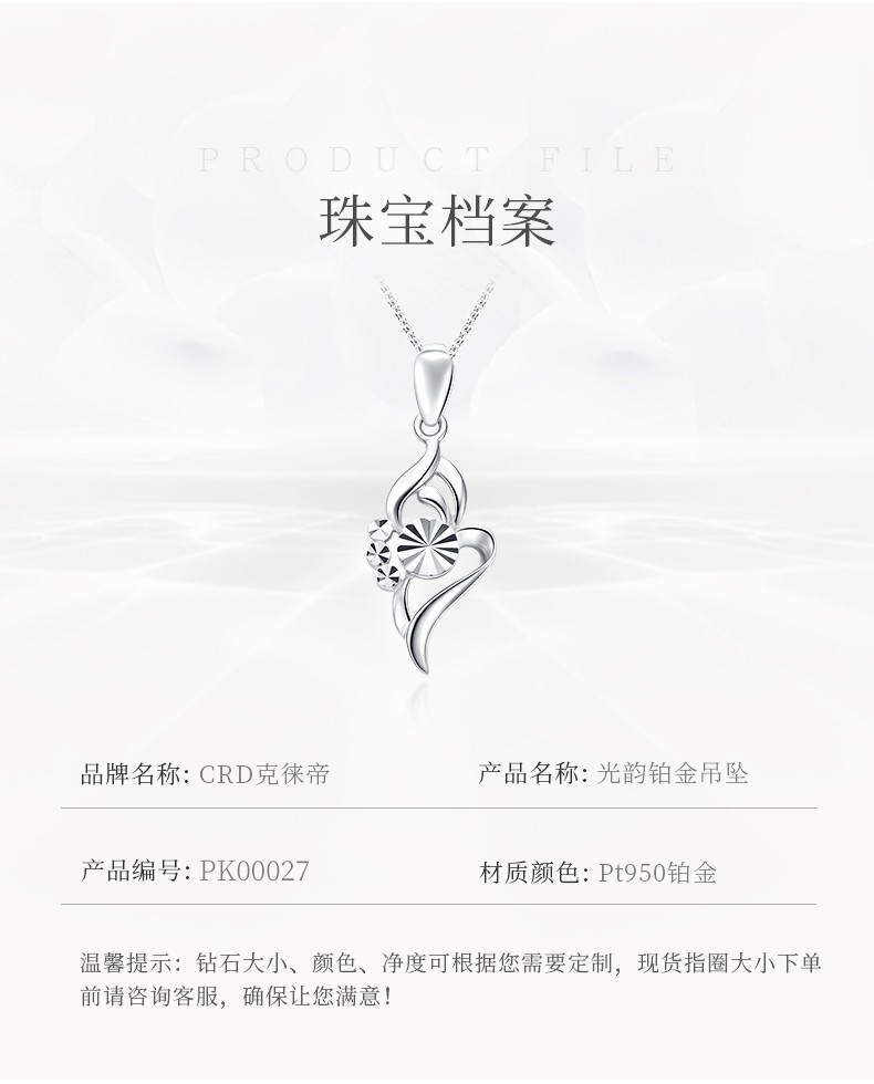 CRD Ke Laidi spot sparkling pt950 platinum pendant platinum pendant female flower dance versatile gift 1.35g