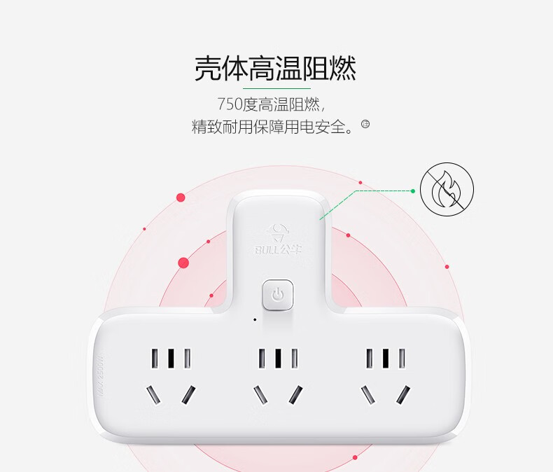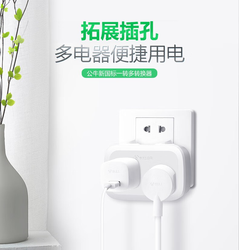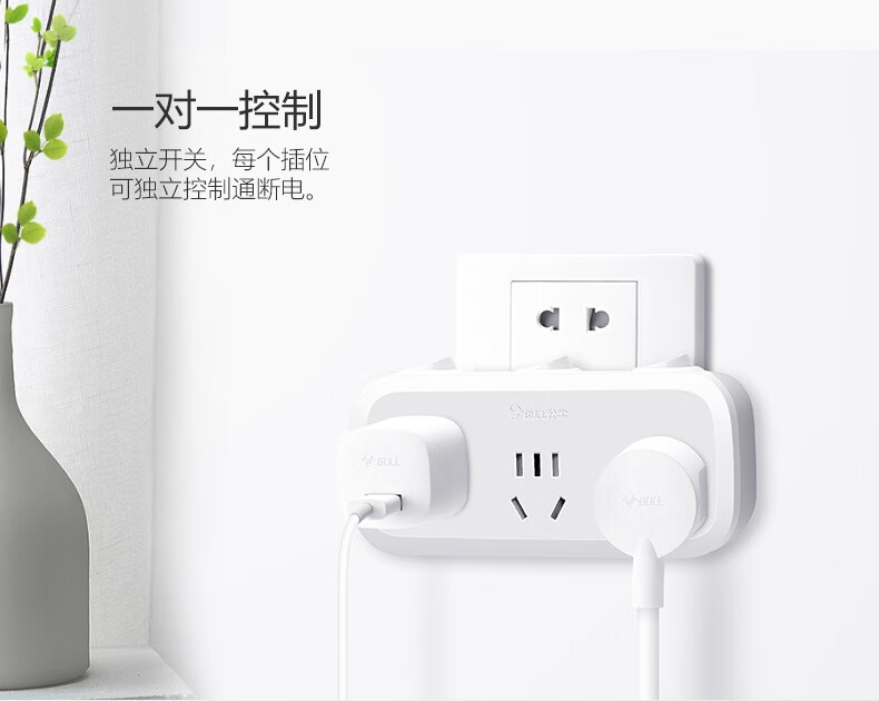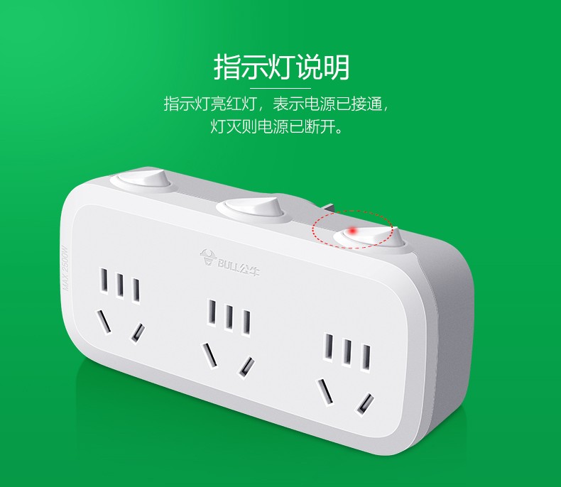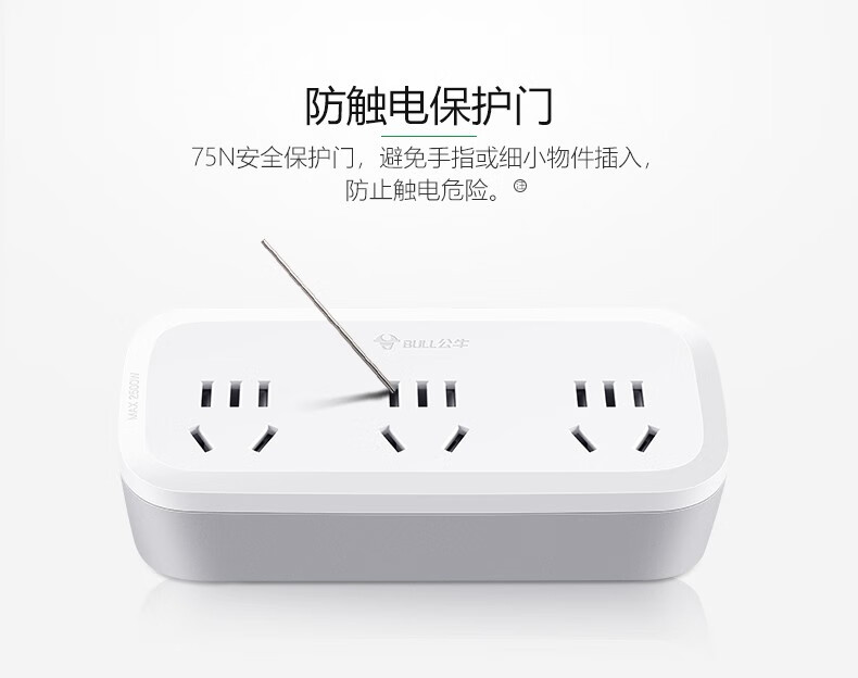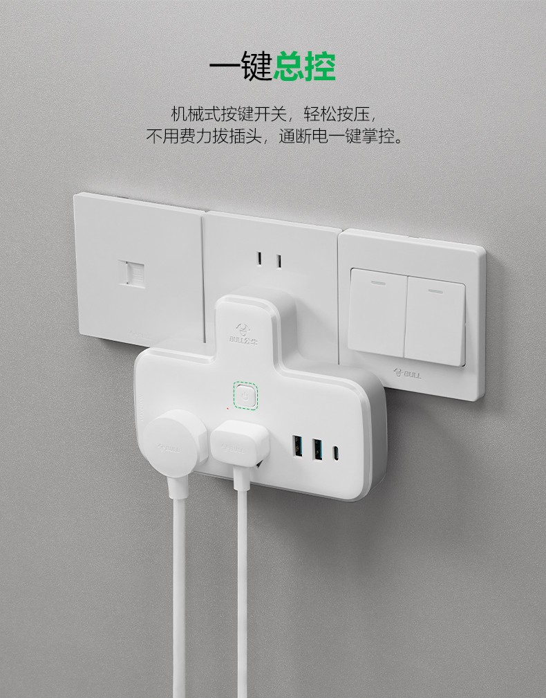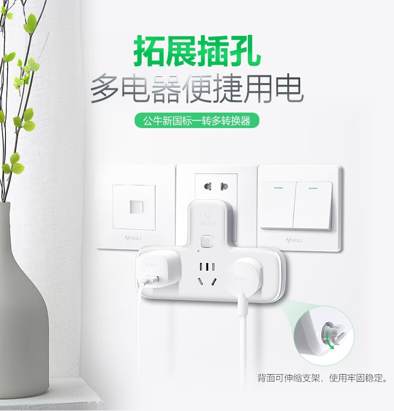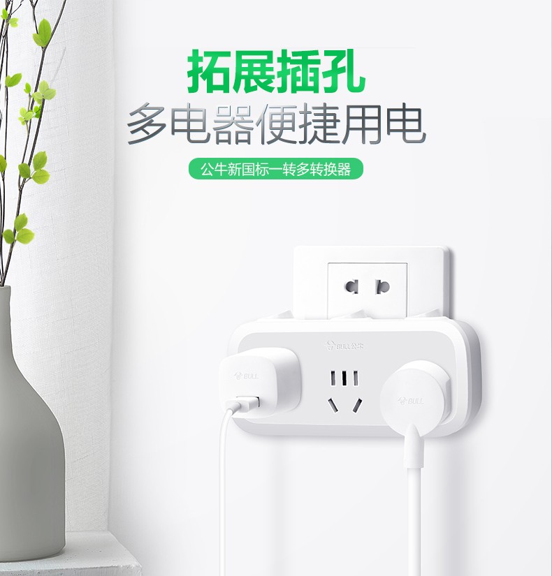 Bull (BULL) Bull (BULL) plug strip multi-function socket one-turn multiple/protection door socket power conversion plug extension converter one-turn three-point control GN-9333