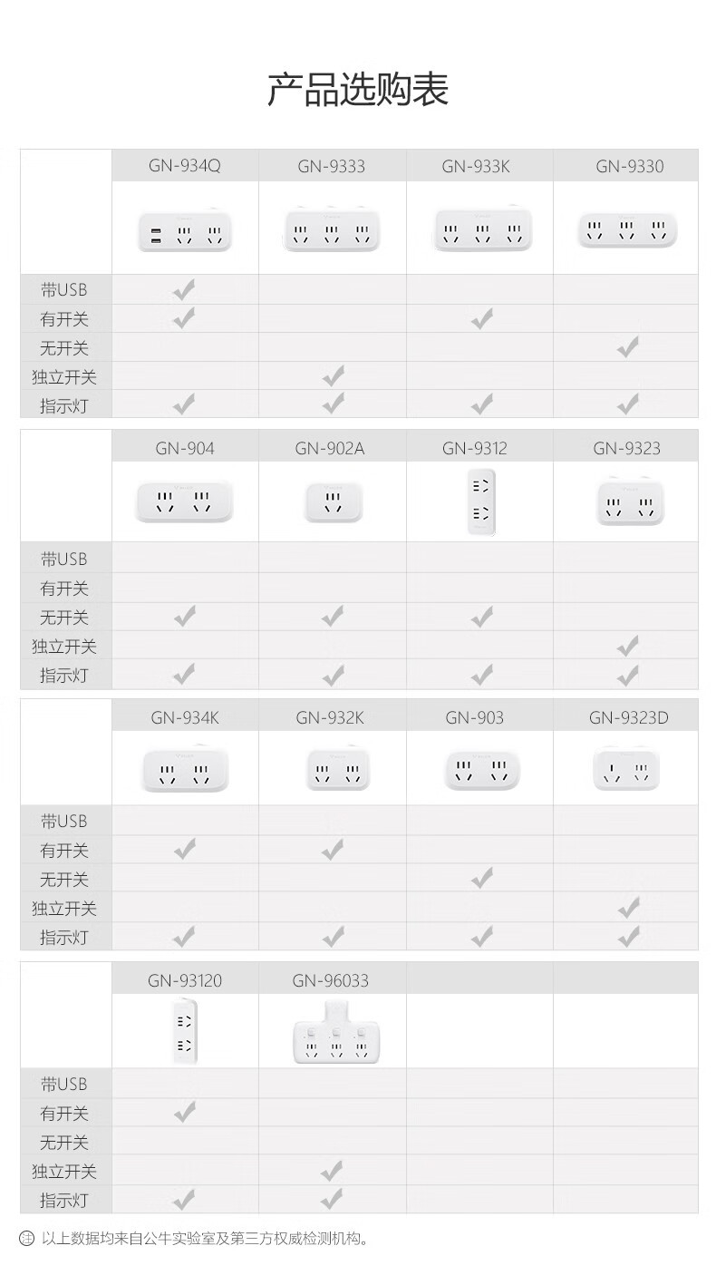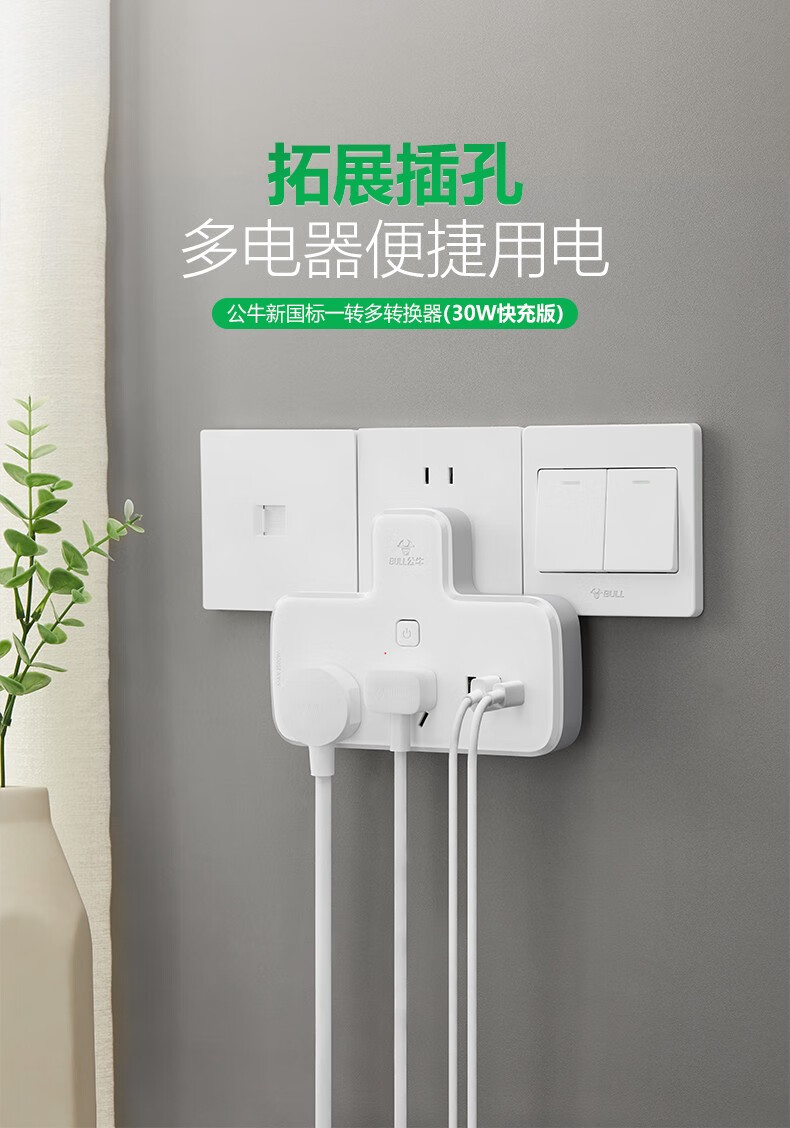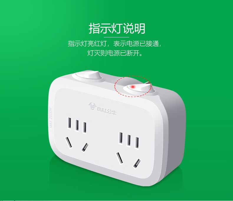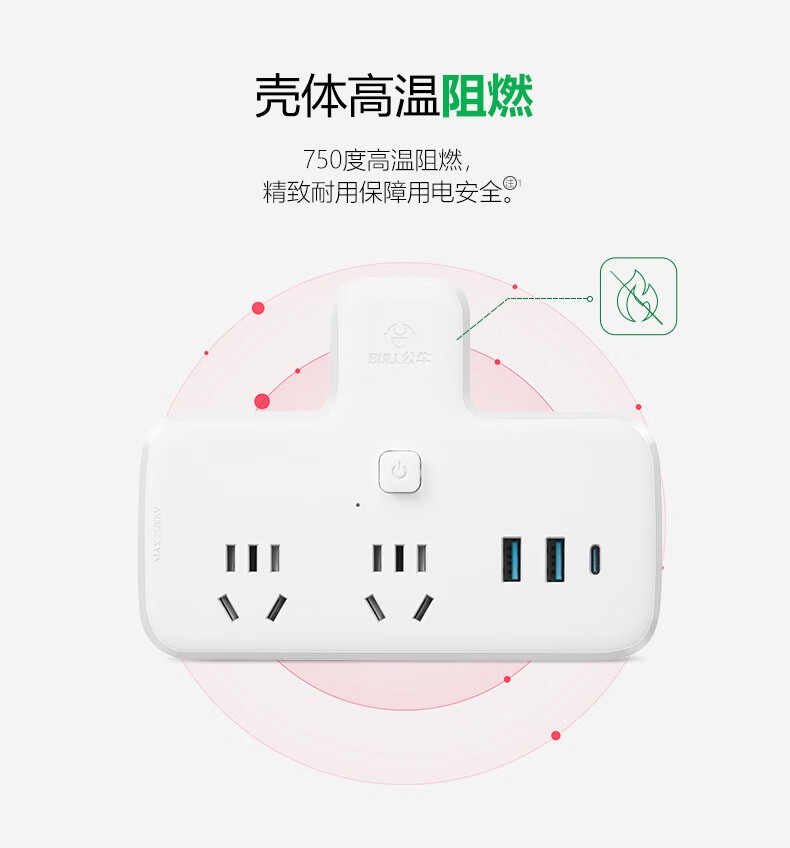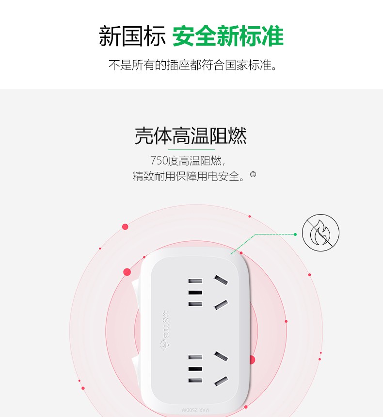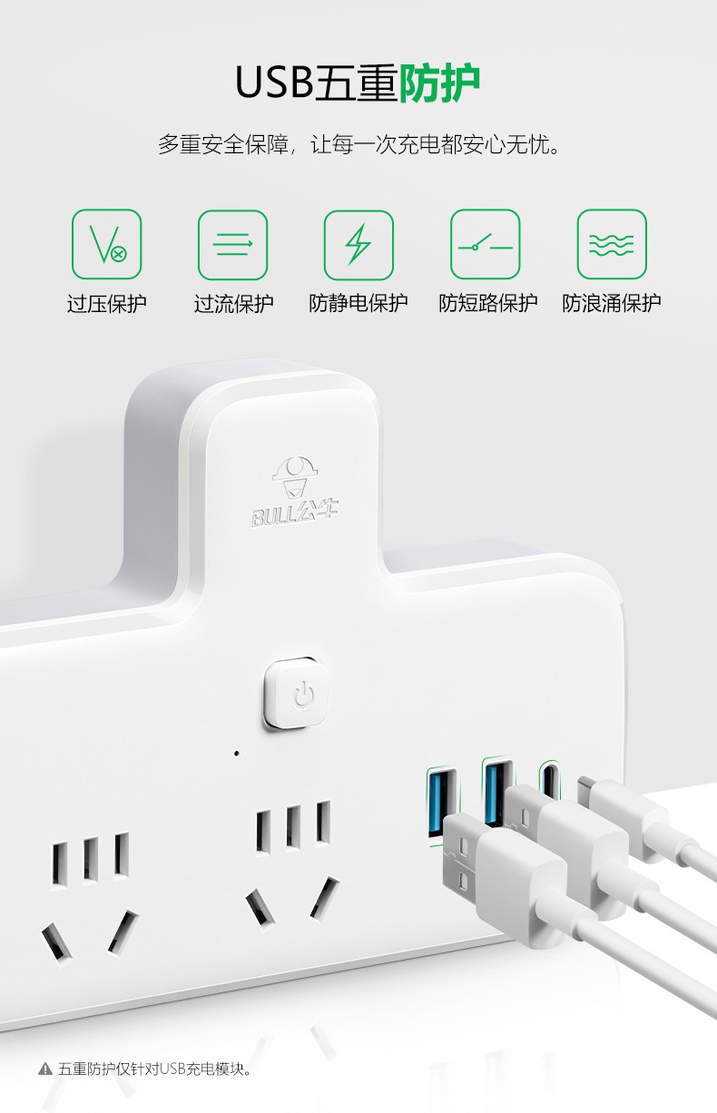 Bull (BULL) Bull (BULL) plug strip multi-function socket one-turn multiple/protection door socket power conversion plug extension converter one-turn three-point control GN-9333