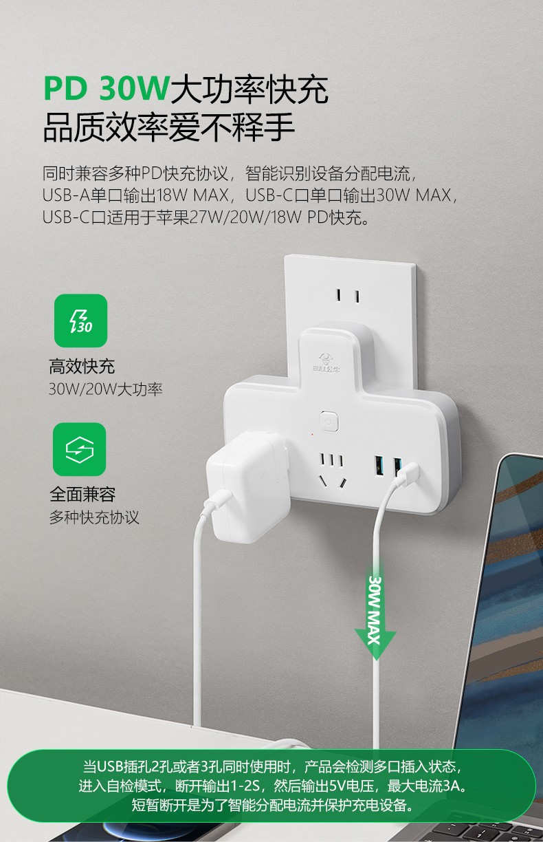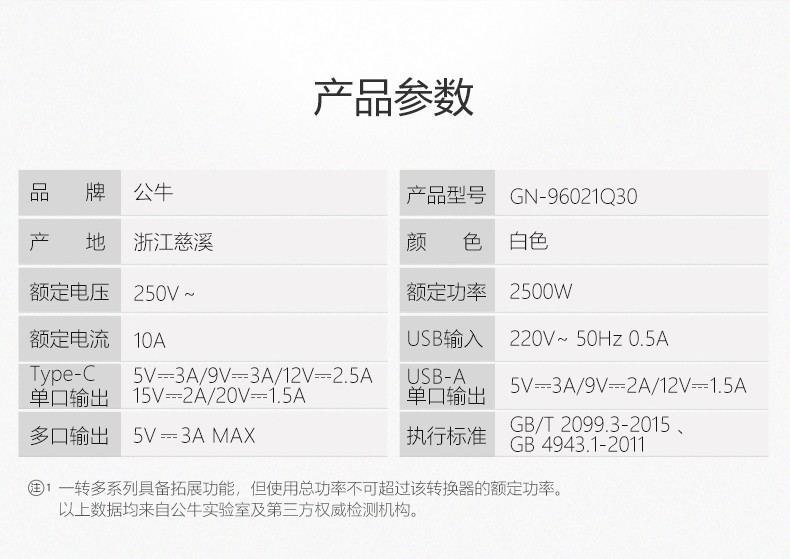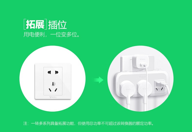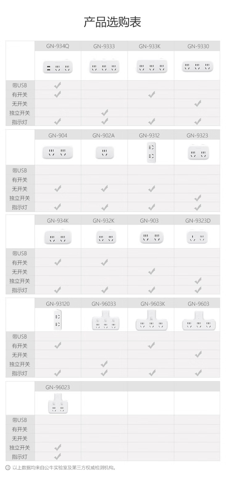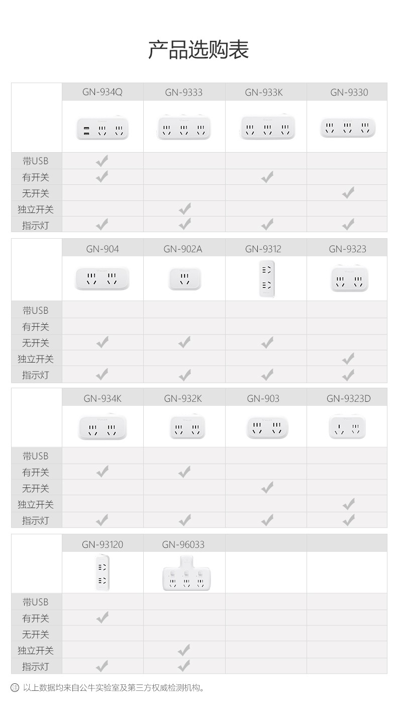 Bull (BULL) Bull (BULL) plug strip multi-function socket one-turn multiple/protection door socket power conversion plug extension converter one-turn three-point control GN-9333