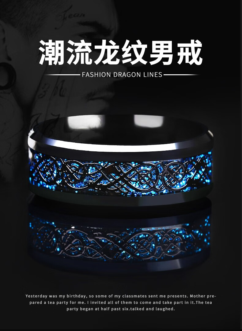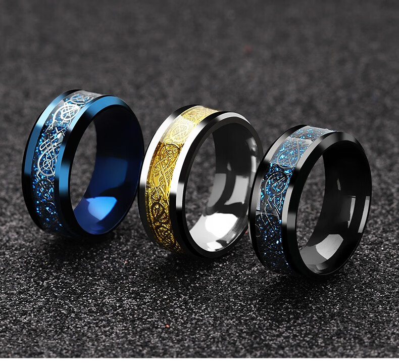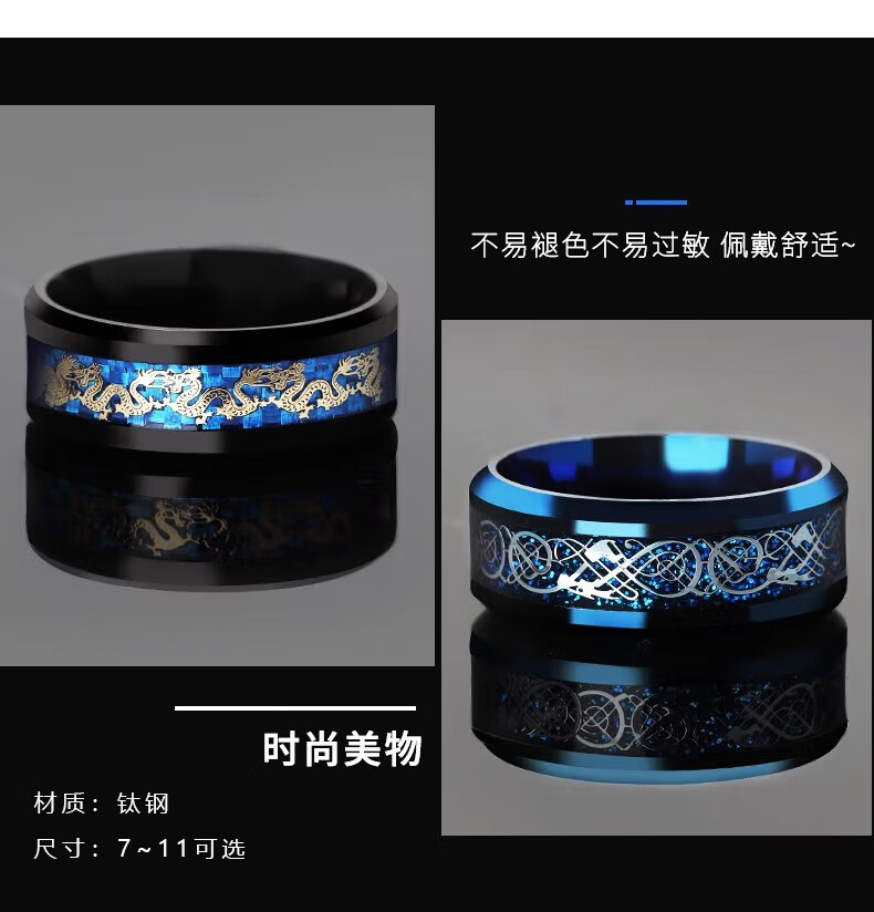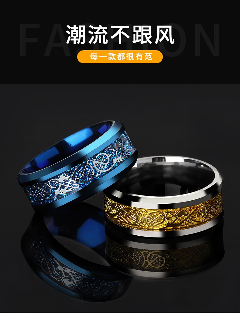 Qi Xiaomi free engraving dragon pattern ring men's trendy single ring index finger ring student simple trendy men's tail ring hand jewelry default delivery 9 other sizes remarks