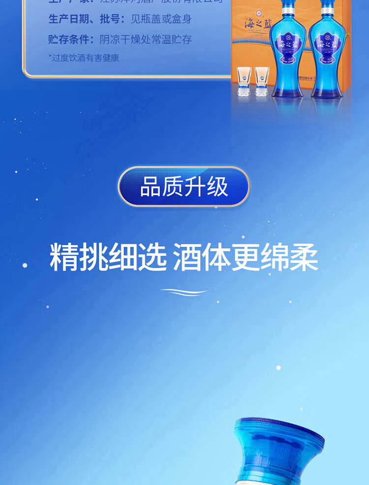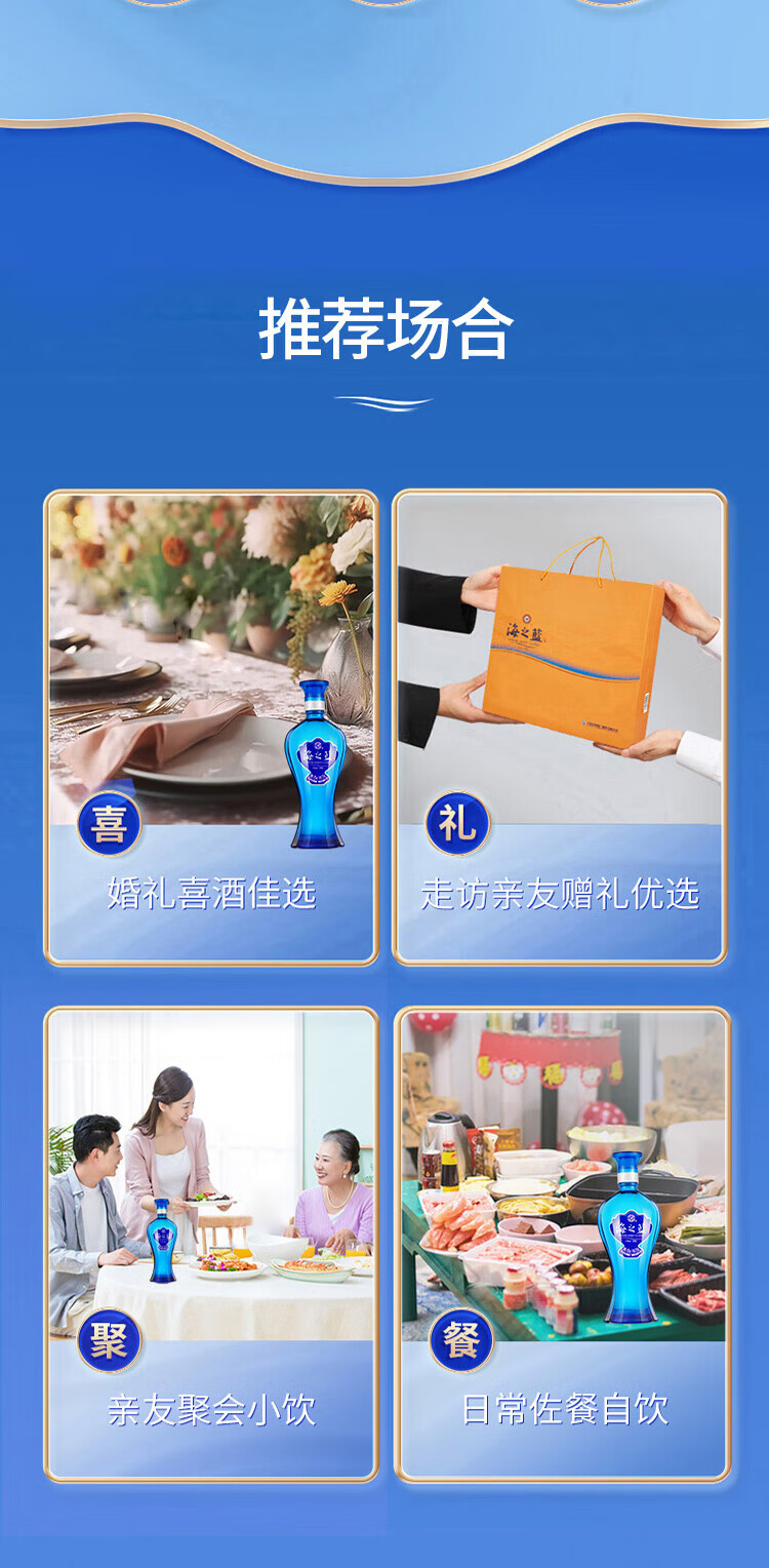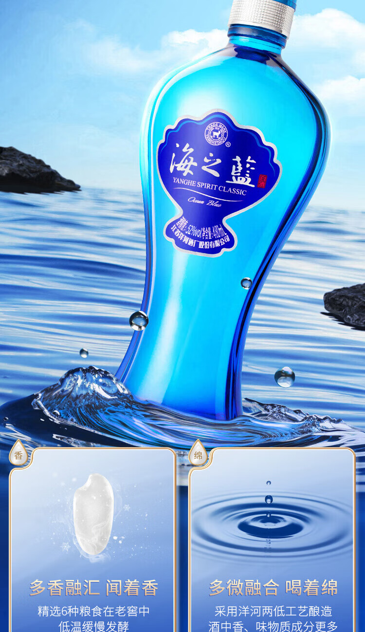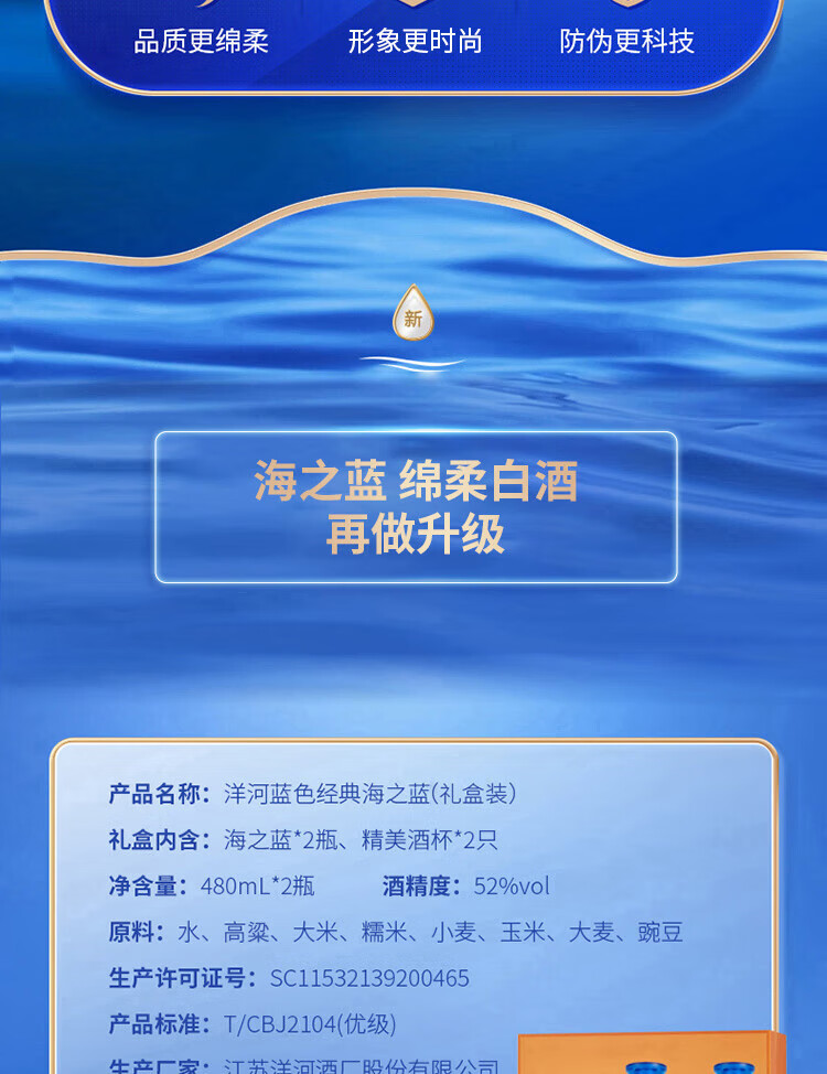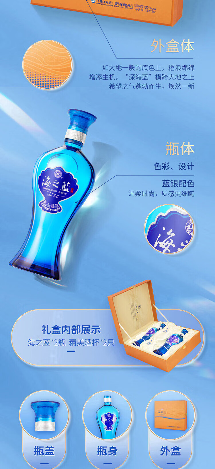 Yanghehai Blue Classic Blue 52 Degrees 480ml*2 Bottles Gift Box Soft and Strong Fragrance