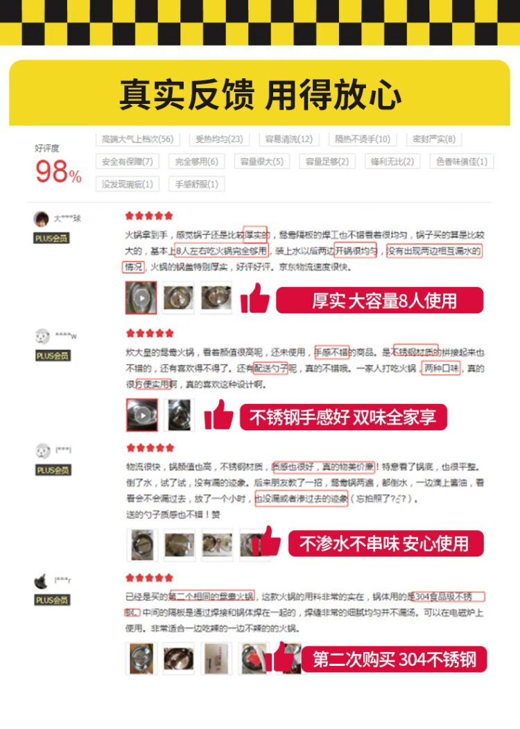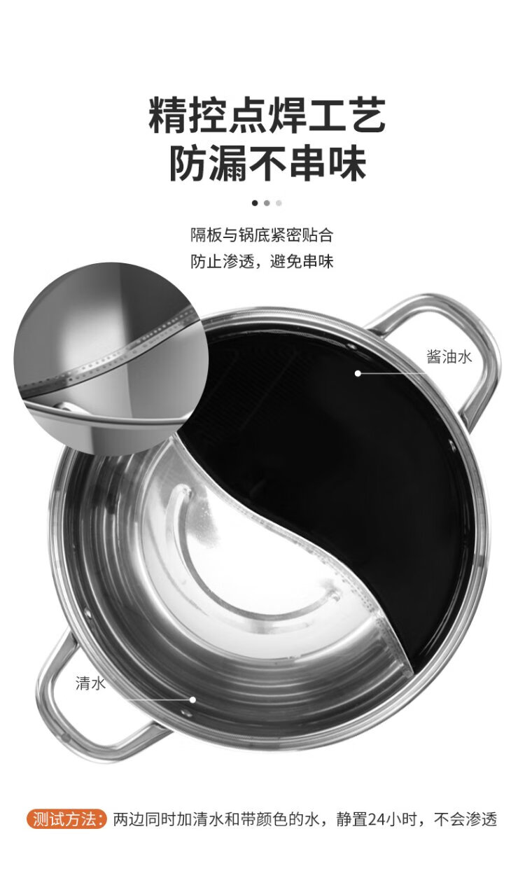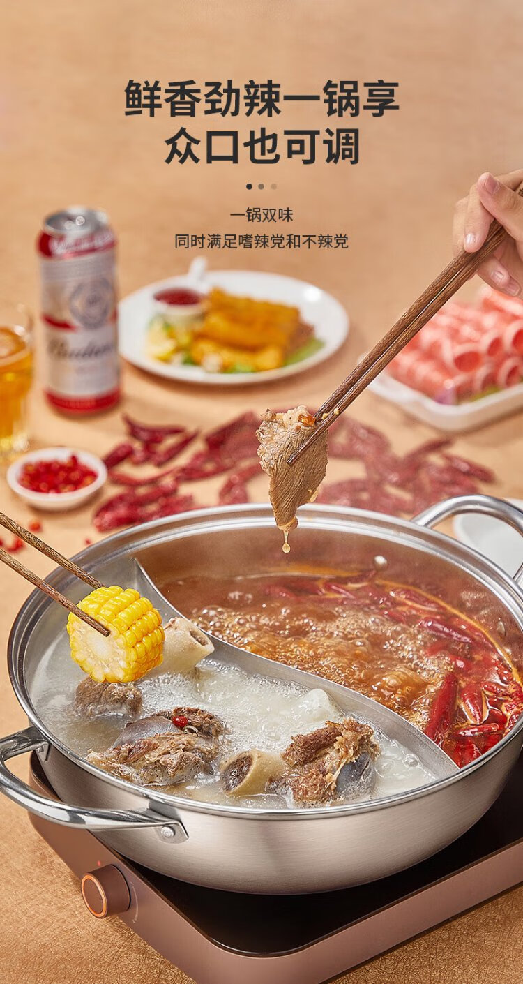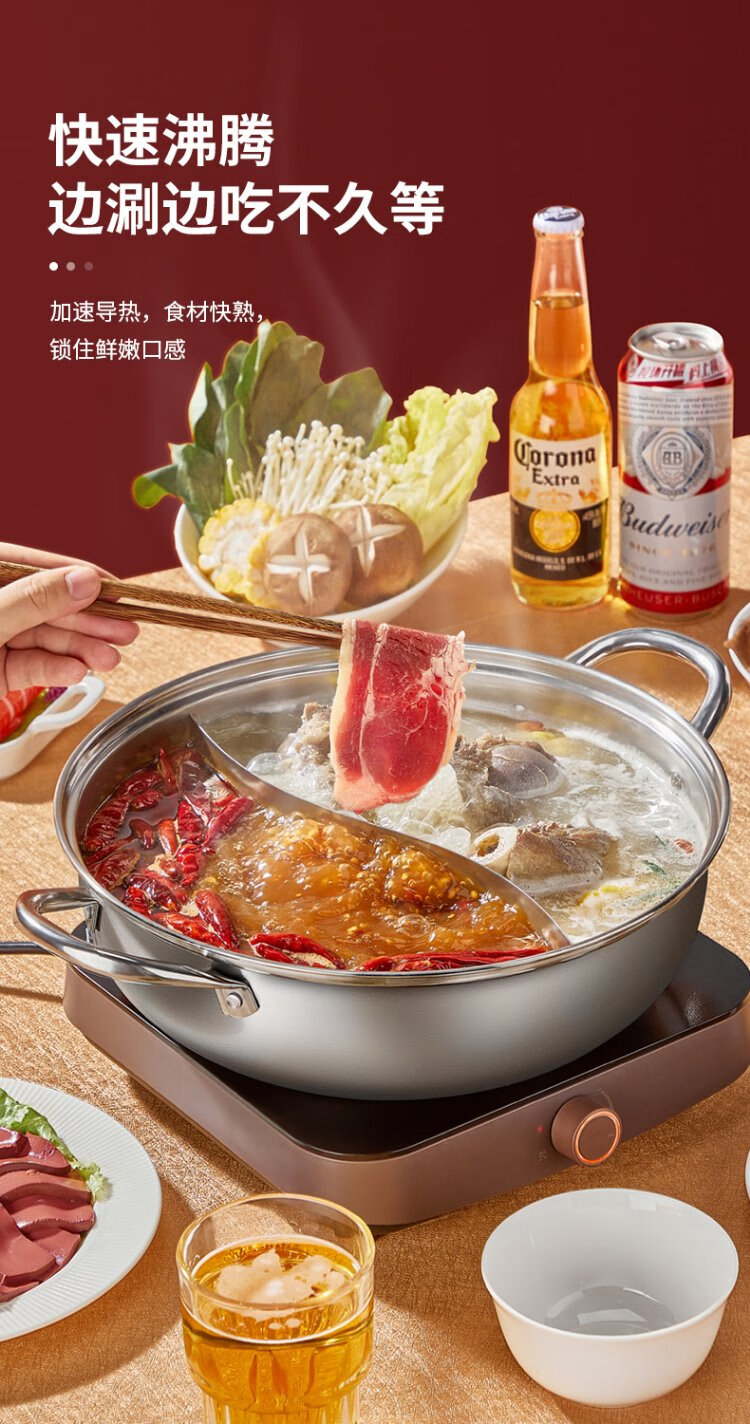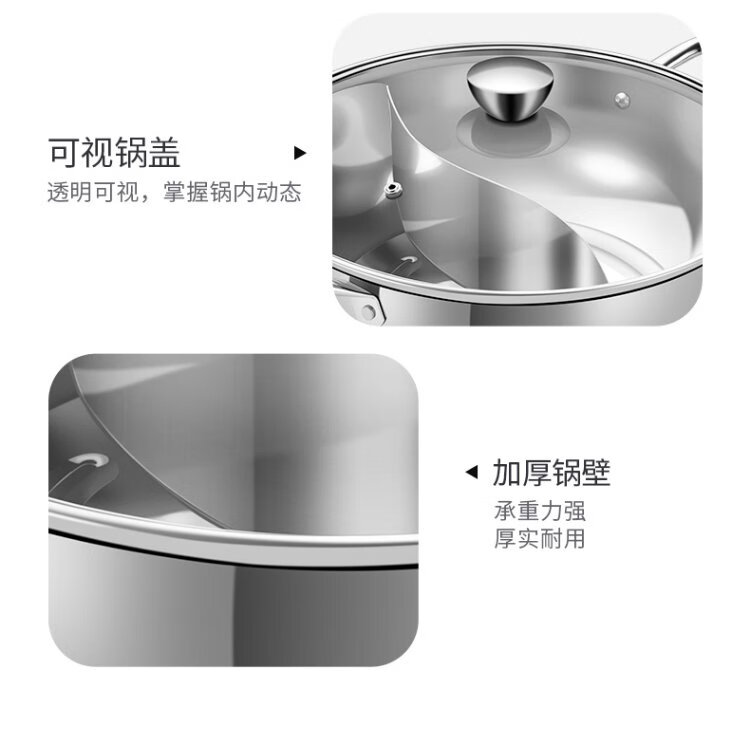 Chuidahuang Yuanyang Hot Pot 30cm 304 Stainless Steel Easy Clean Hot Pot Pot Soup Pot Induction Cooker General Purpose 4-6 People