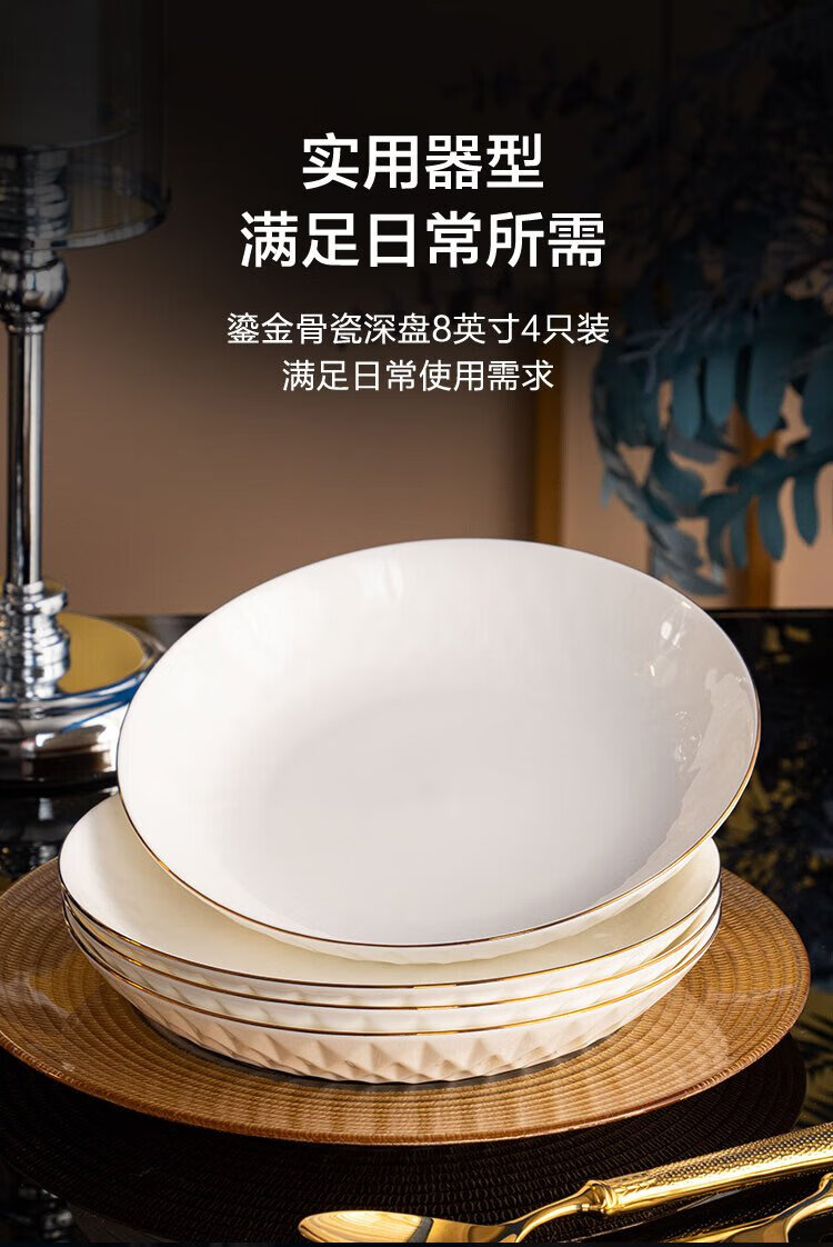 Made in Tokyo, tableware set, plates, plates, housewarming ceramics for home use, gilt bone china, deep plate 8 inches*4