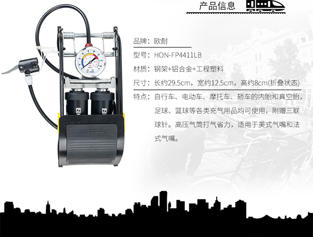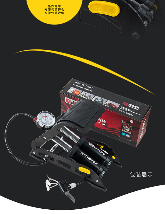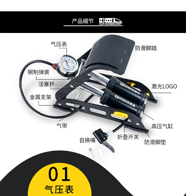 Ounai inflator, foot-operated high-pressure inflator, bicycle, electric vehicle, motorcycle, car, household, portable, foot-operated, vehicle-mounted air pump