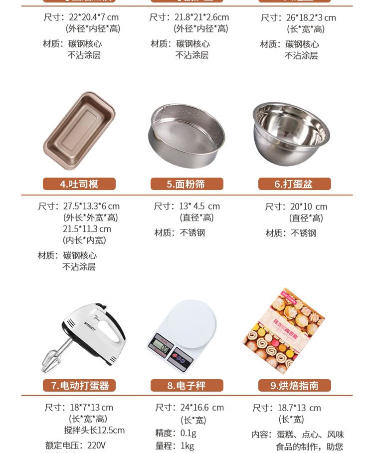 Baijie baking tool set, a complete set of tools for making cakes, toast cake mold, baking tray, entry-level baking mold