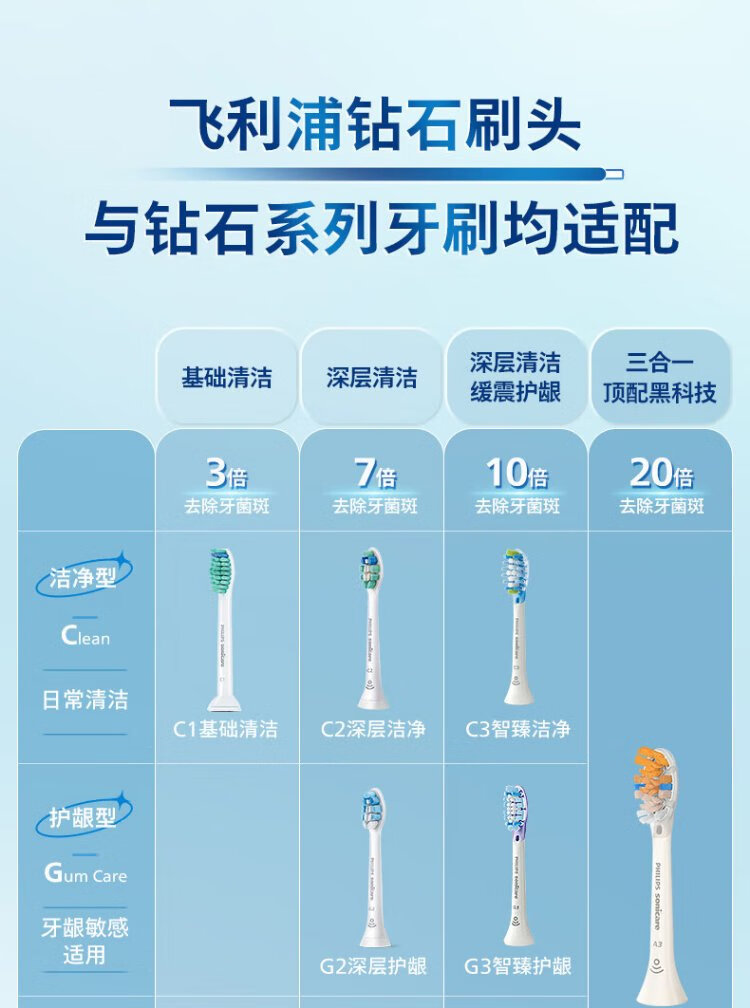 Philips Electric Toothbrush Head Diamond Bright White Brush Head W2 HX6063/96 3 Pack Black Suitable for Diamond 3 Series, 5 Series, and 9 Series