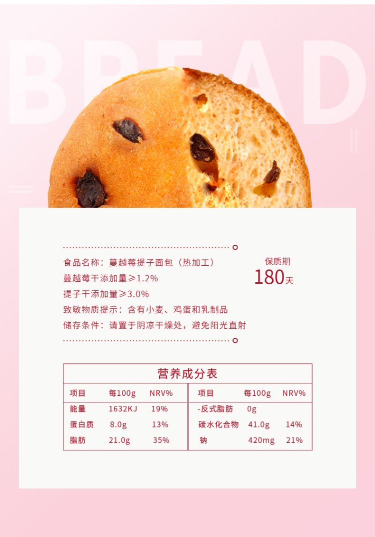 Daliyuan cranberry raisin bread 320g snack internet celebrity snack snack nutritious breakfast office food