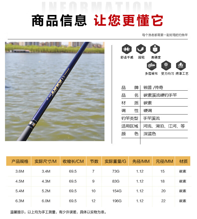 Ripu fishing rod hand rod carbon fishing rod stream rod fishing gear set stream rod 6.3 meters one-hand rod set