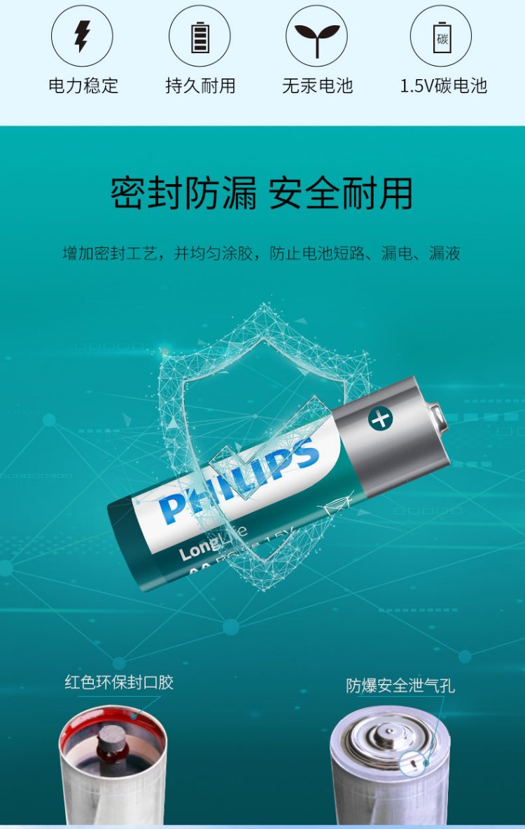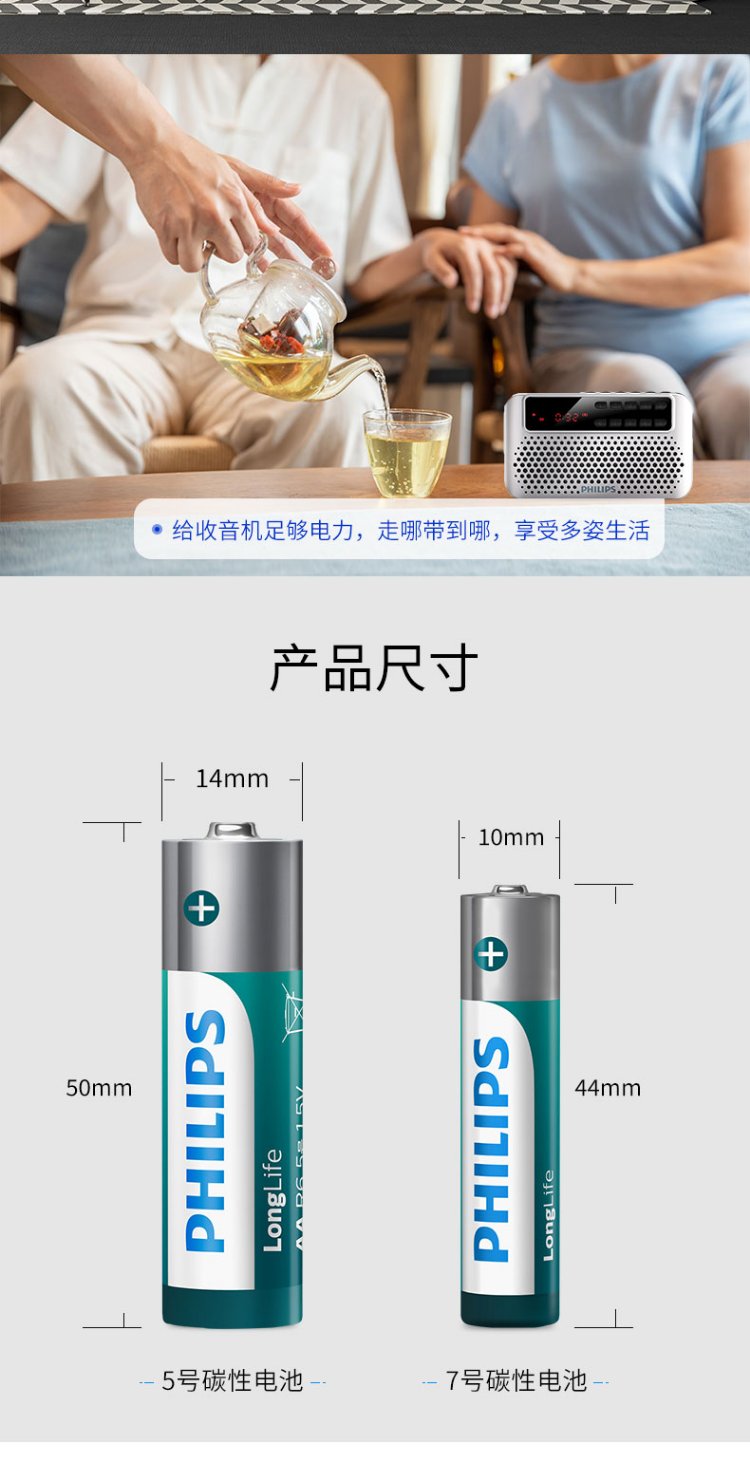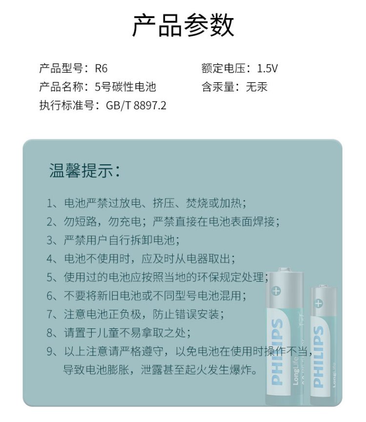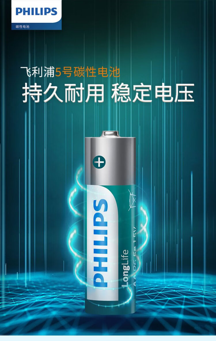 Philips (PHILIPS) carbon AA battery 6 dry batteries suitable for remote controls/clocks/electronic scales/calculators/alarm clocks/ear thermometer AA R6 batteries