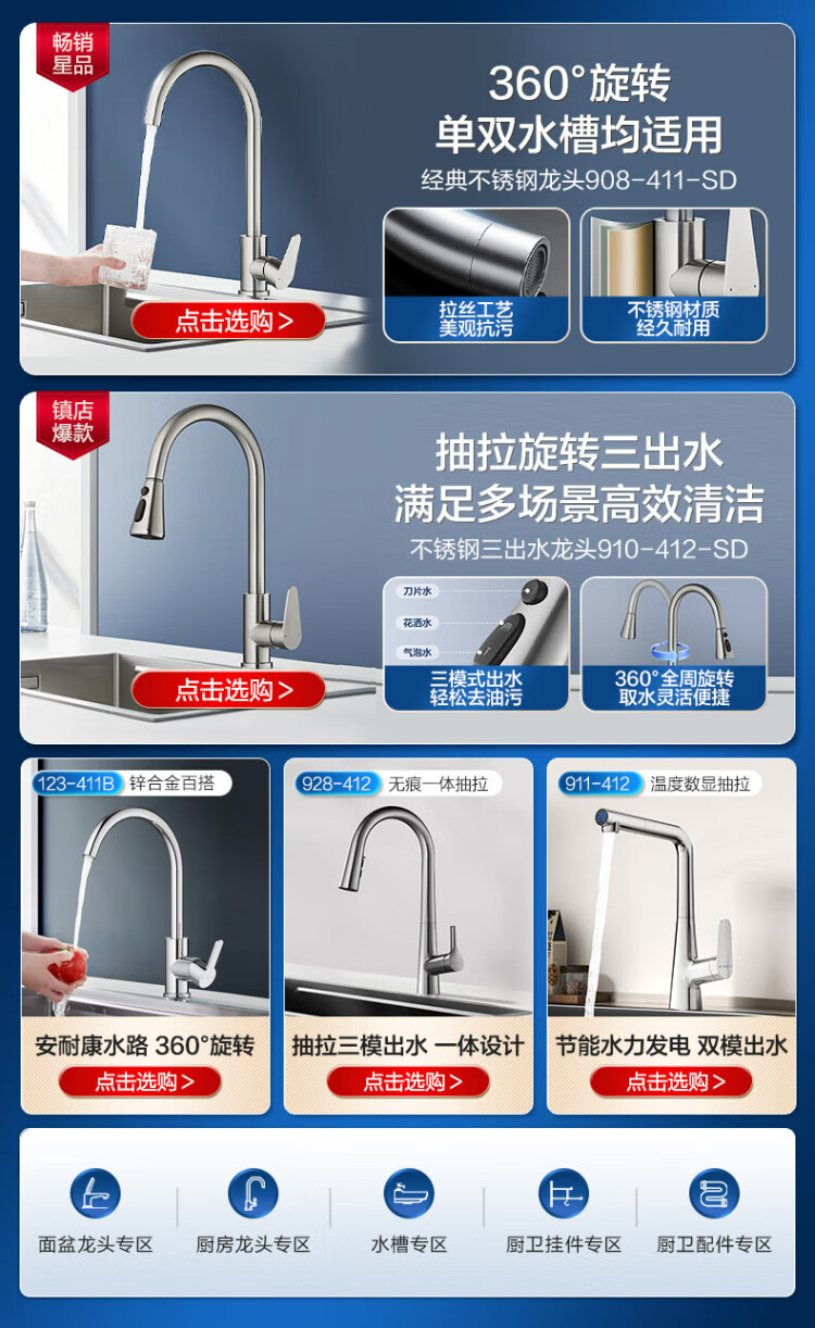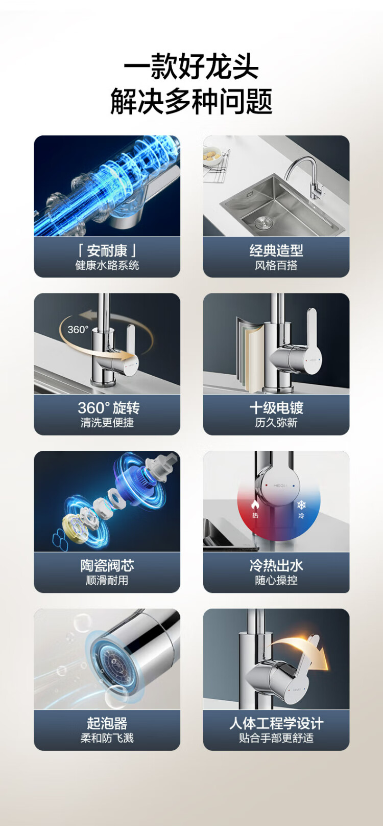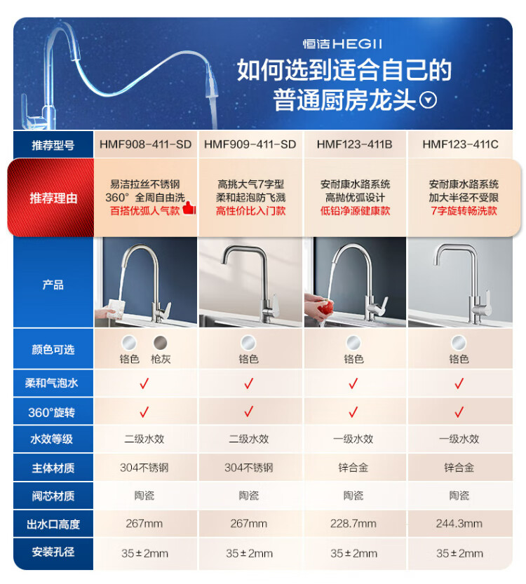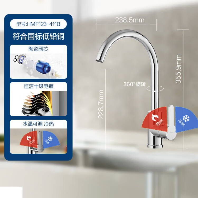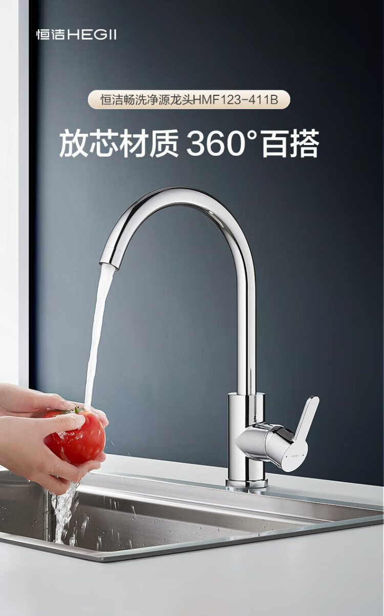 Hengjie (HEGII) kitchen faucet zinc alloy sink hot and cold water 360 rotating high throw faucet HMF123-411B