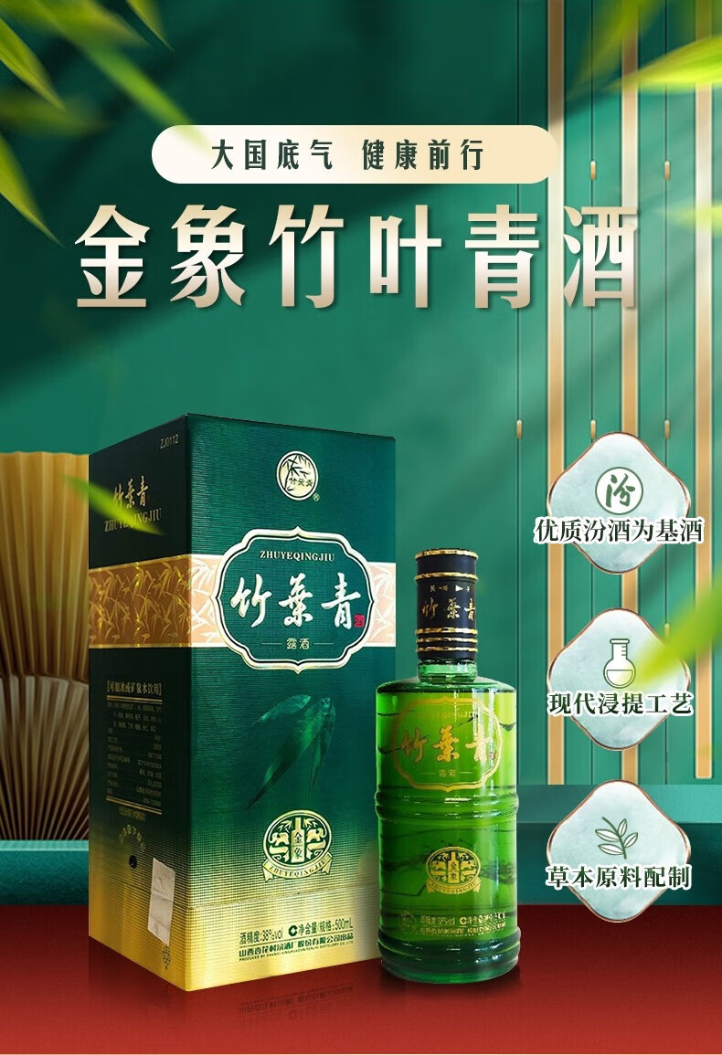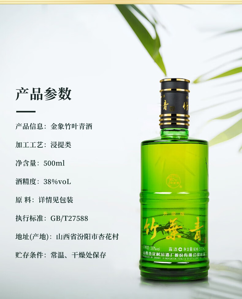Bamboo Leaf Green Wine Lujiu Jinxiangzhu 38% 500ml*6 full box Fenjiu Xinghuacun