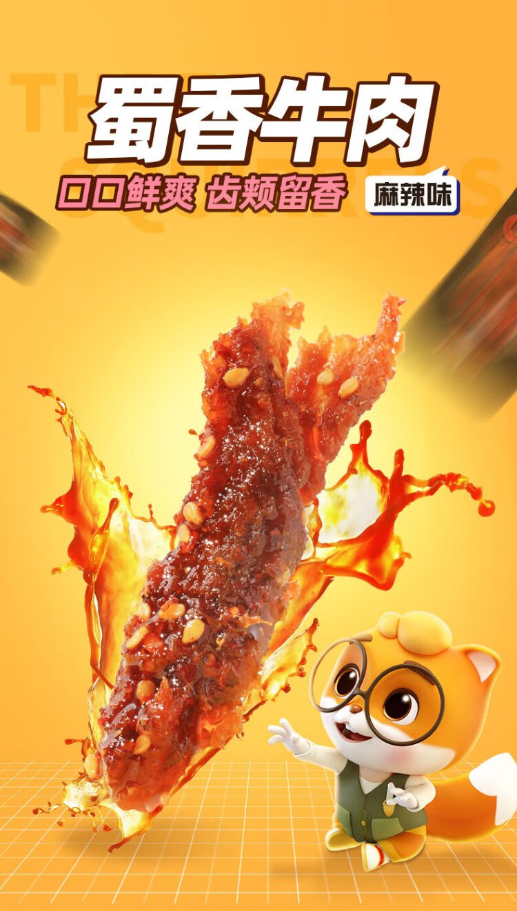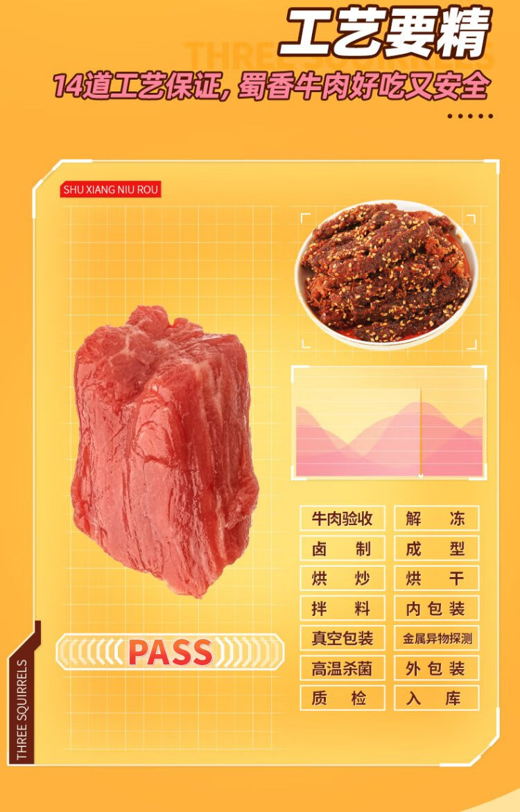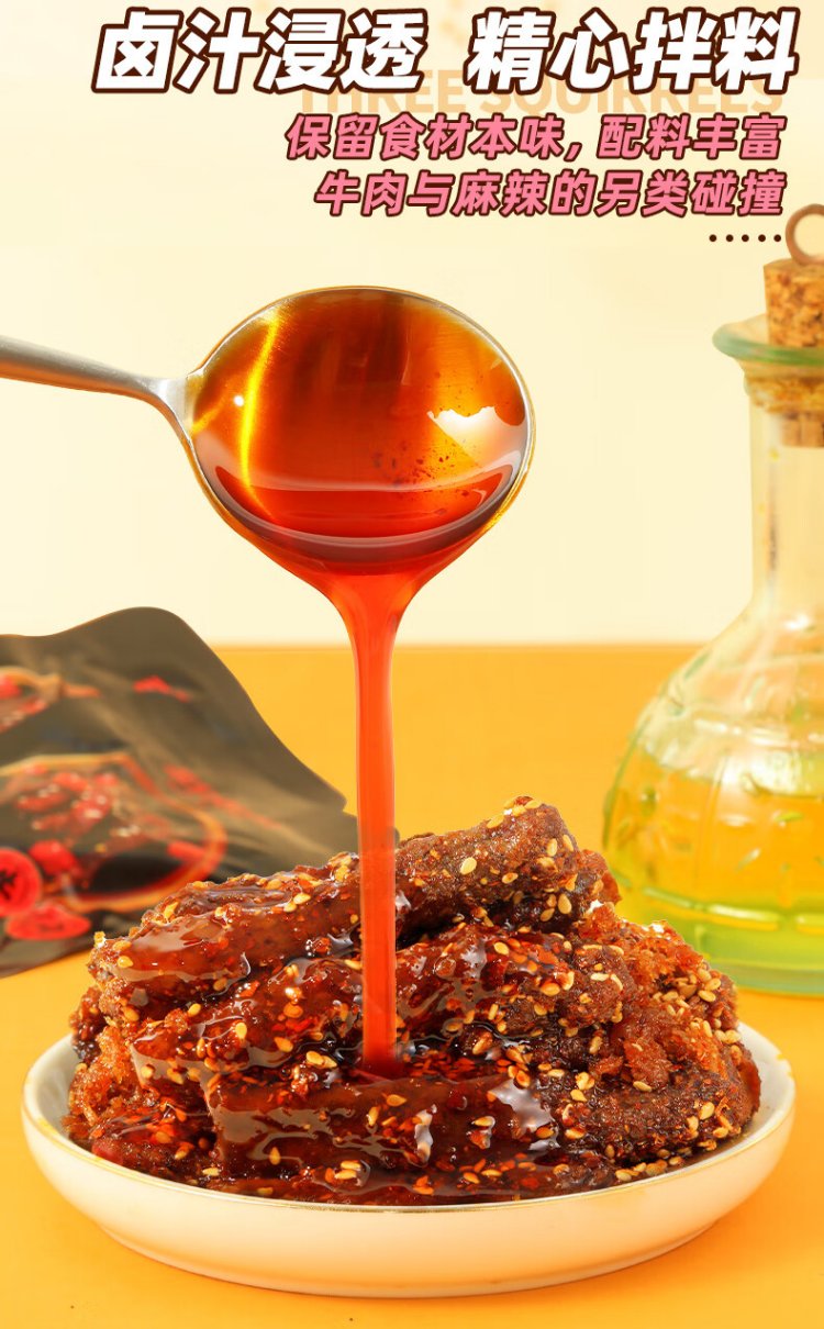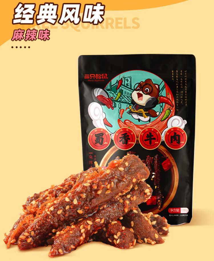 Three Squirrels Shu-flavored beef spicy flavor 100g bag casual snack jerky meat jerky Bashu-flavor beef jerky hand-shredded beef