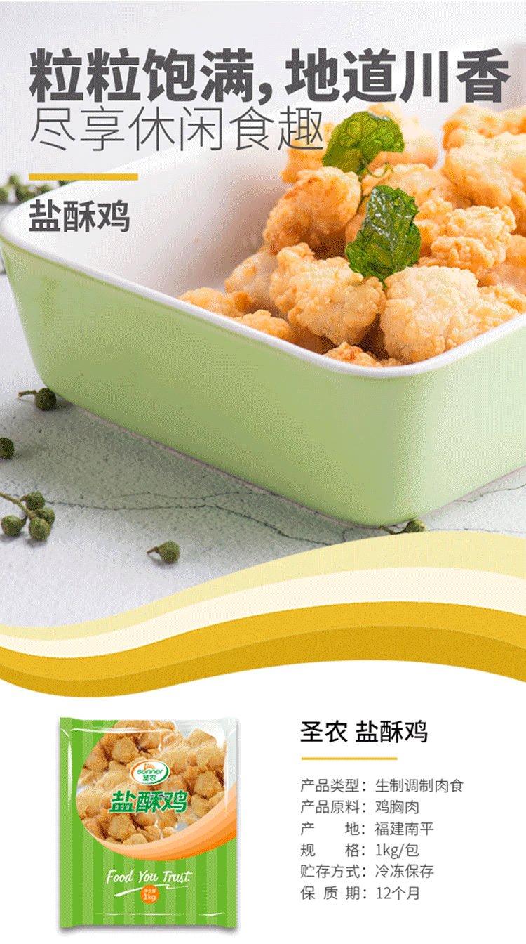 Sheng Nong Salt Crispy Chicken 2Jin Jin is equal to 0.5kg bag of frozen original chicken popcorn chicken semi-finished breaded fried ingredients