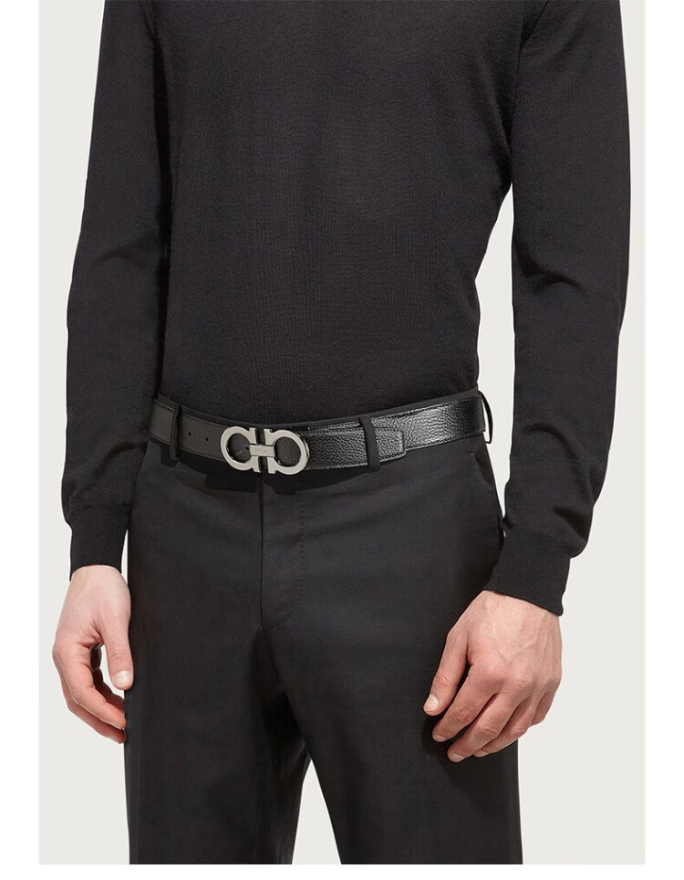 Ferragamo men's black double-sided adjustable Gancini belt 0689134_C _ 105 (gift for boyfriend)