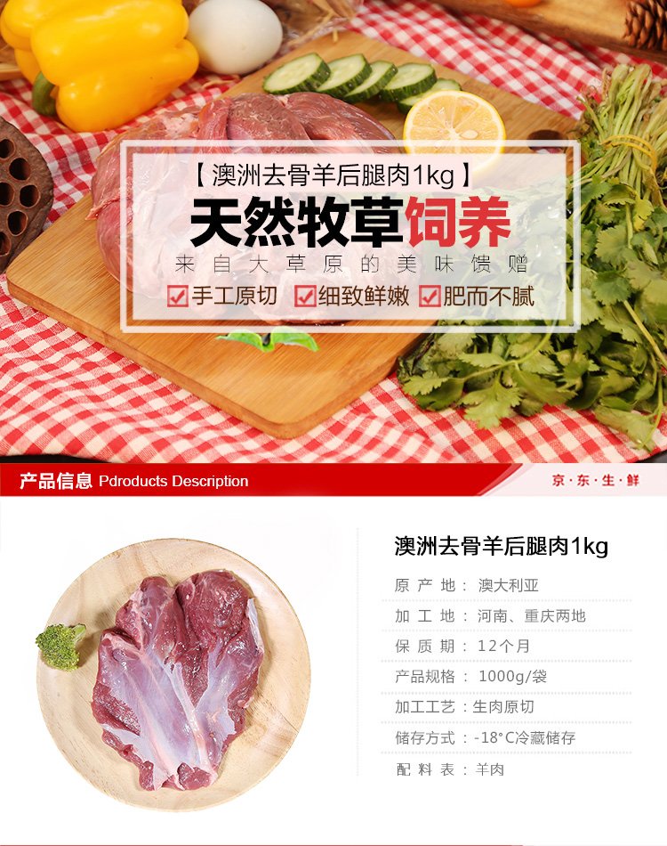 Hengdu Australian raw boneless lamb hind leg meat net weight 2Jin Jin is equal to 0.5kg/bag frozen barbecue stew ingredients mutton