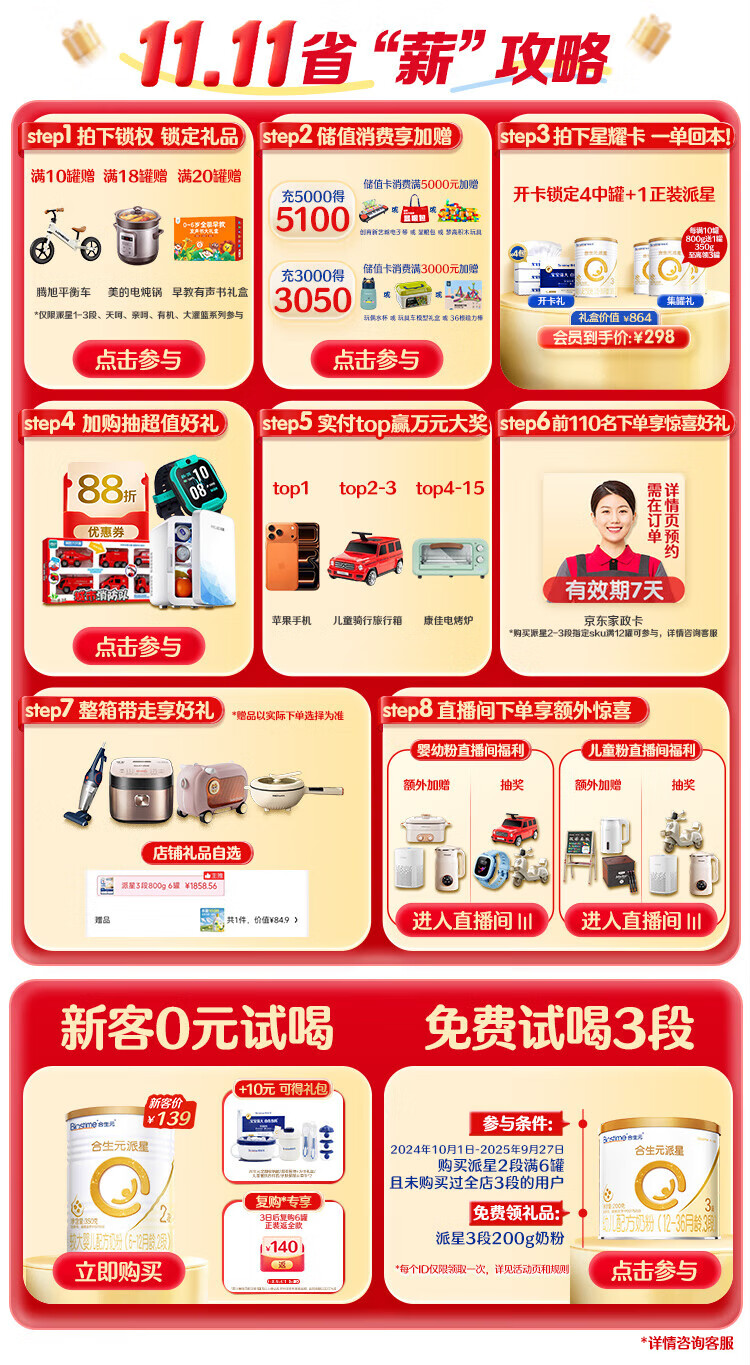 BIOSTIME Paixing infant formula milk powder 3 stages (12-36 months) new national standard 800g*6 cans