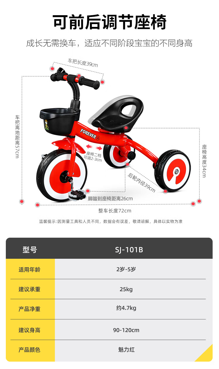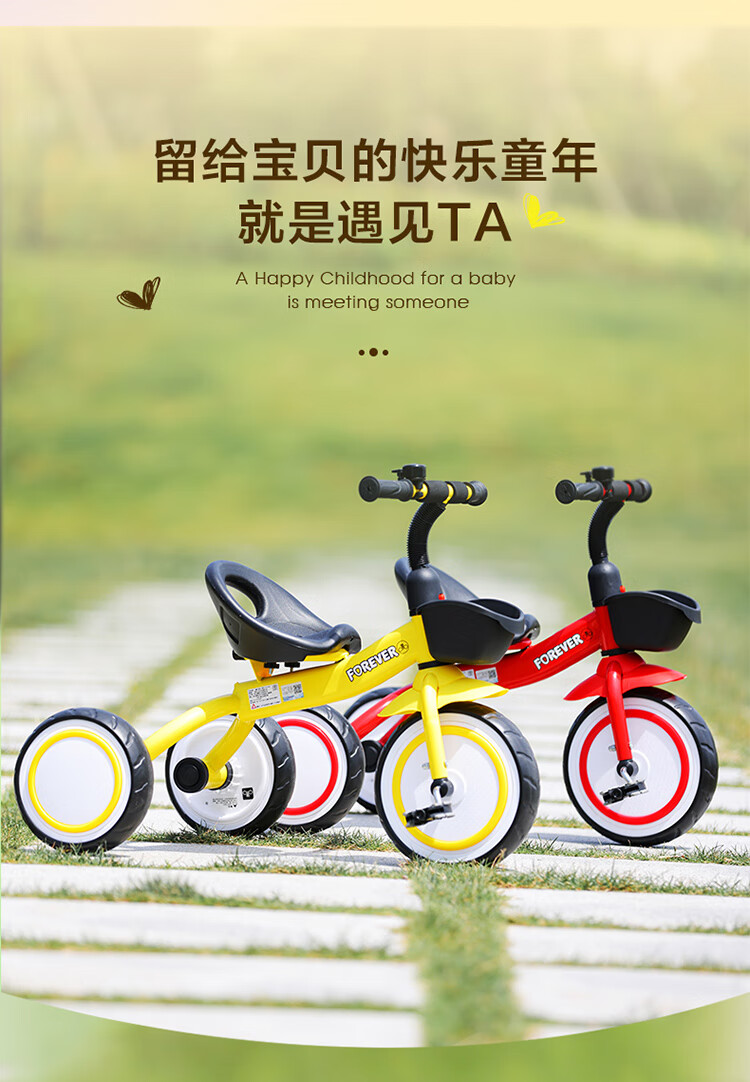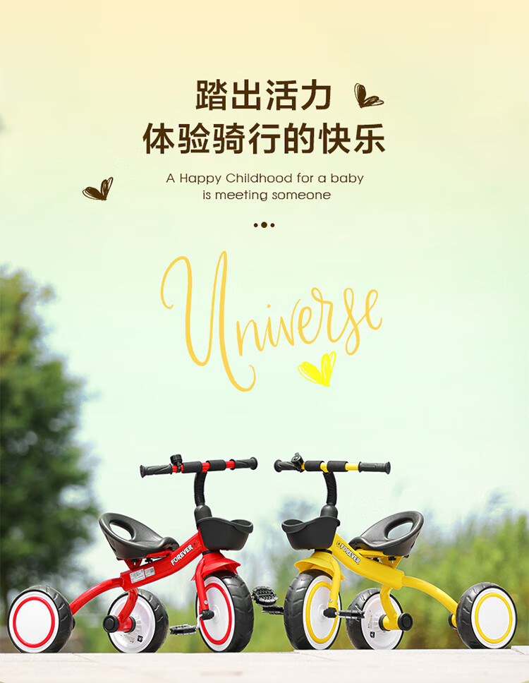 FOREVER (FOREVER) children's tricycle infant stroller 1-3 years old stroller children's bicycle multi-functional detachable charm red