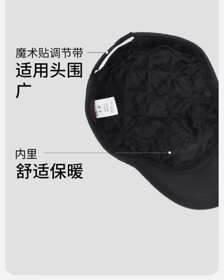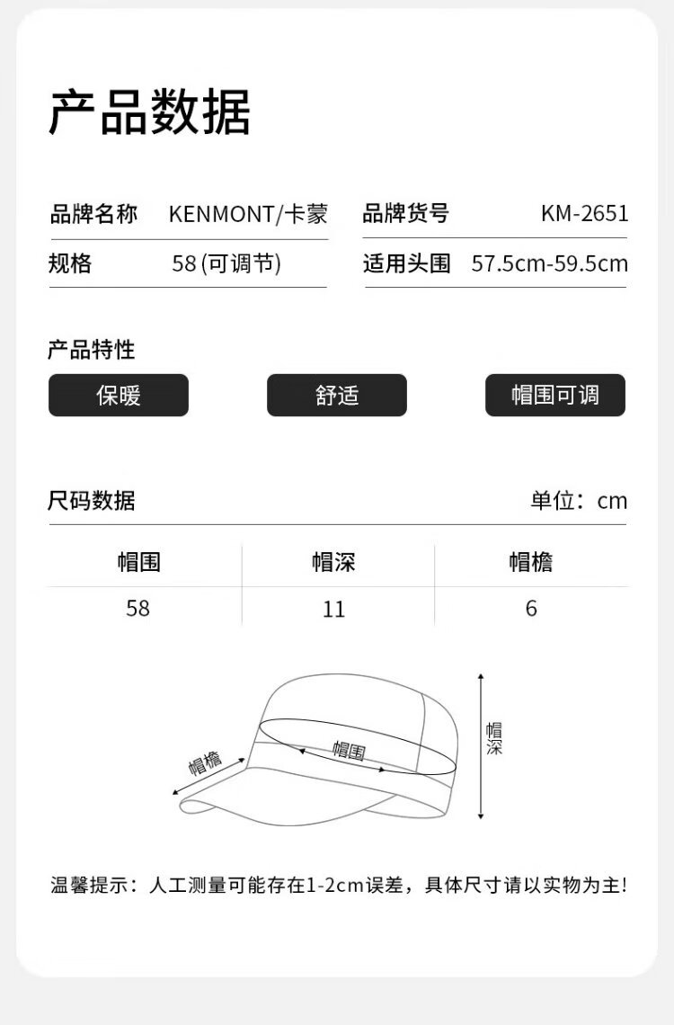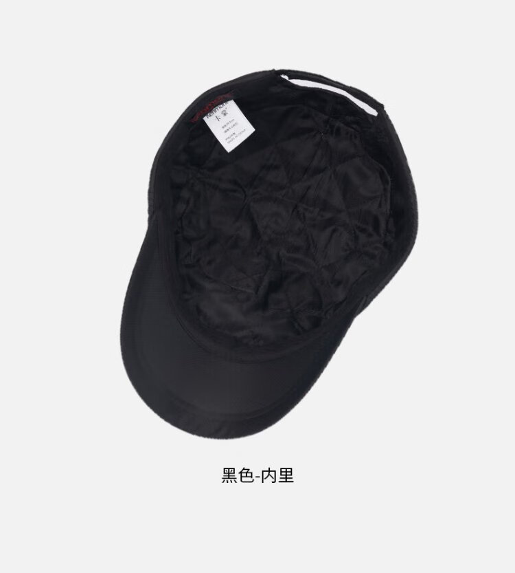 Kenmont thickened warm quilted pure black peaked cap men's autumn and winter outdoor street cold flat cap km-2651
