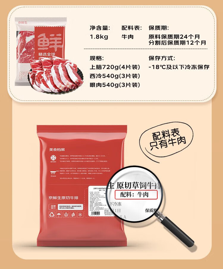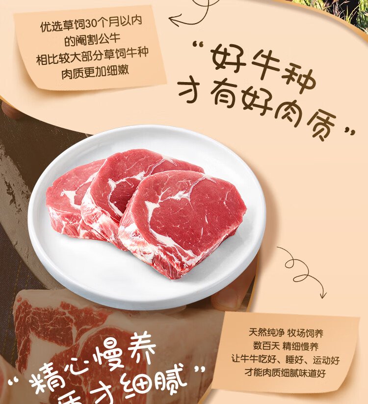 Xianjingcai Brazilian Eye and Sirloin Steak Combo 3.6Jin Jin is equal to 0.5kg (10 pieces) Fitness Reduced Fat Beef True Original Cut